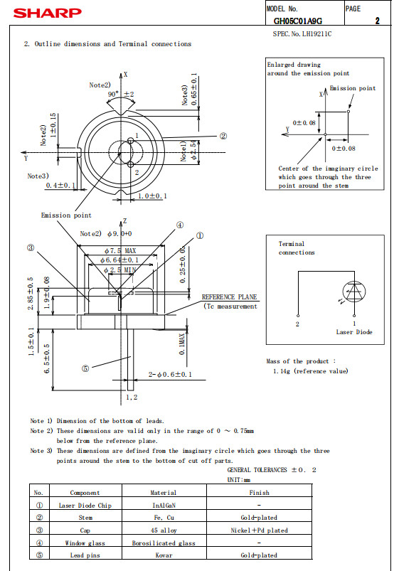 как выглядит SHARP GH05C01A9G 520nm 600mW Green Laser Diode TO-9 фото