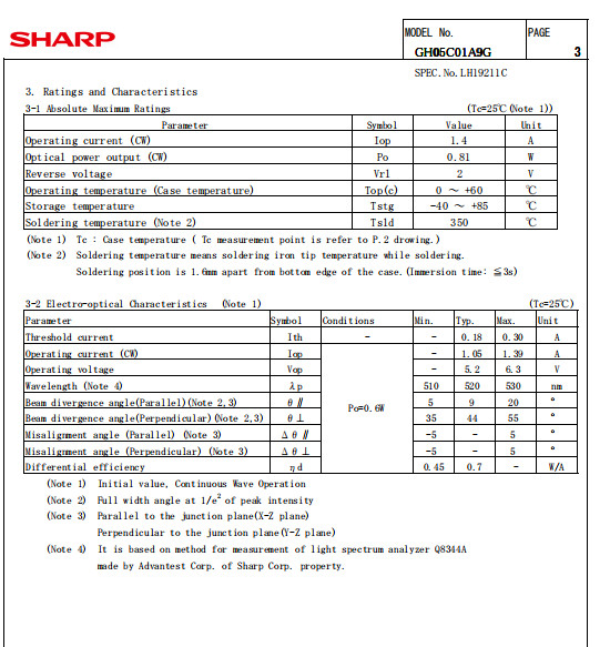 SHARP GH05C01A9G 520nm 600mW Green Laser Diode TO-9