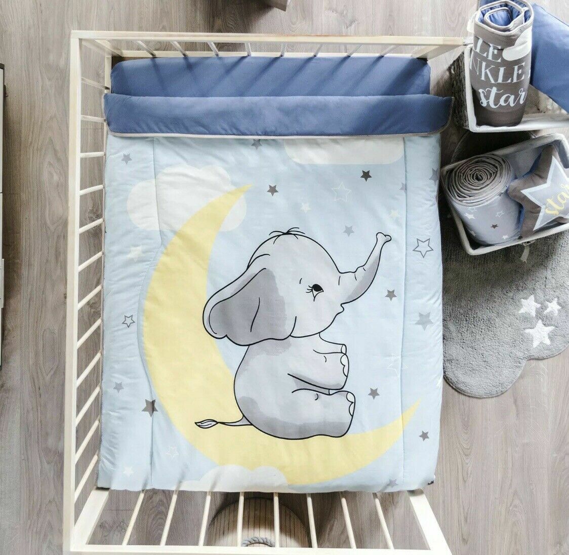 NEW BABY ELEPHANT BLUE MOON BOY NURSERY CRIB BEDDING SET 4 PIECES