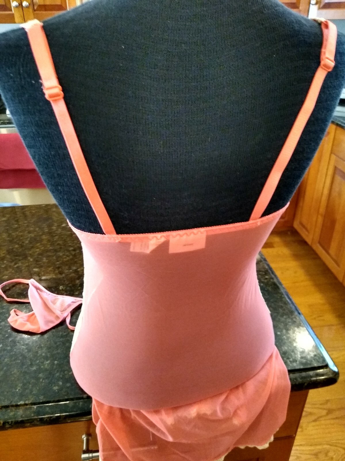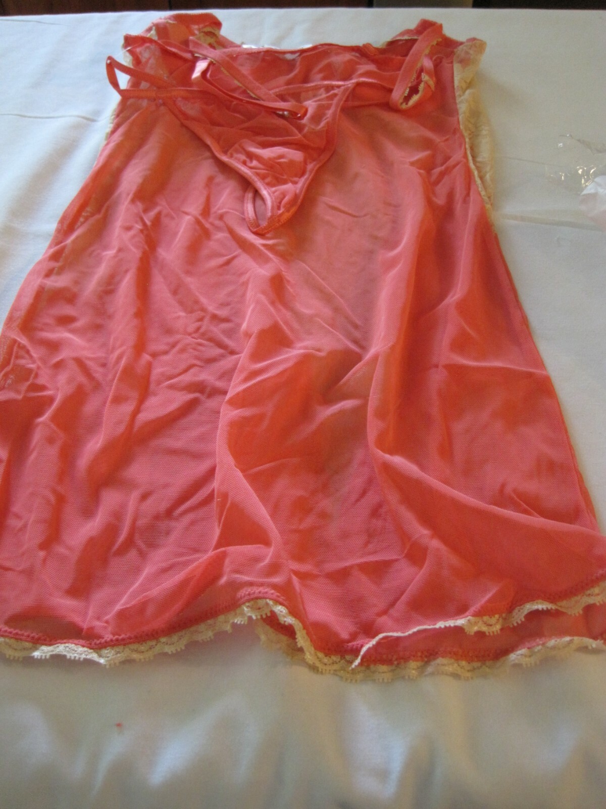 как выглядит FREDERICKS OF HOLLYWOOD NWT SZ. S PEACH LACE BRA TOP TEDDY W/MATCHING THONG фото
