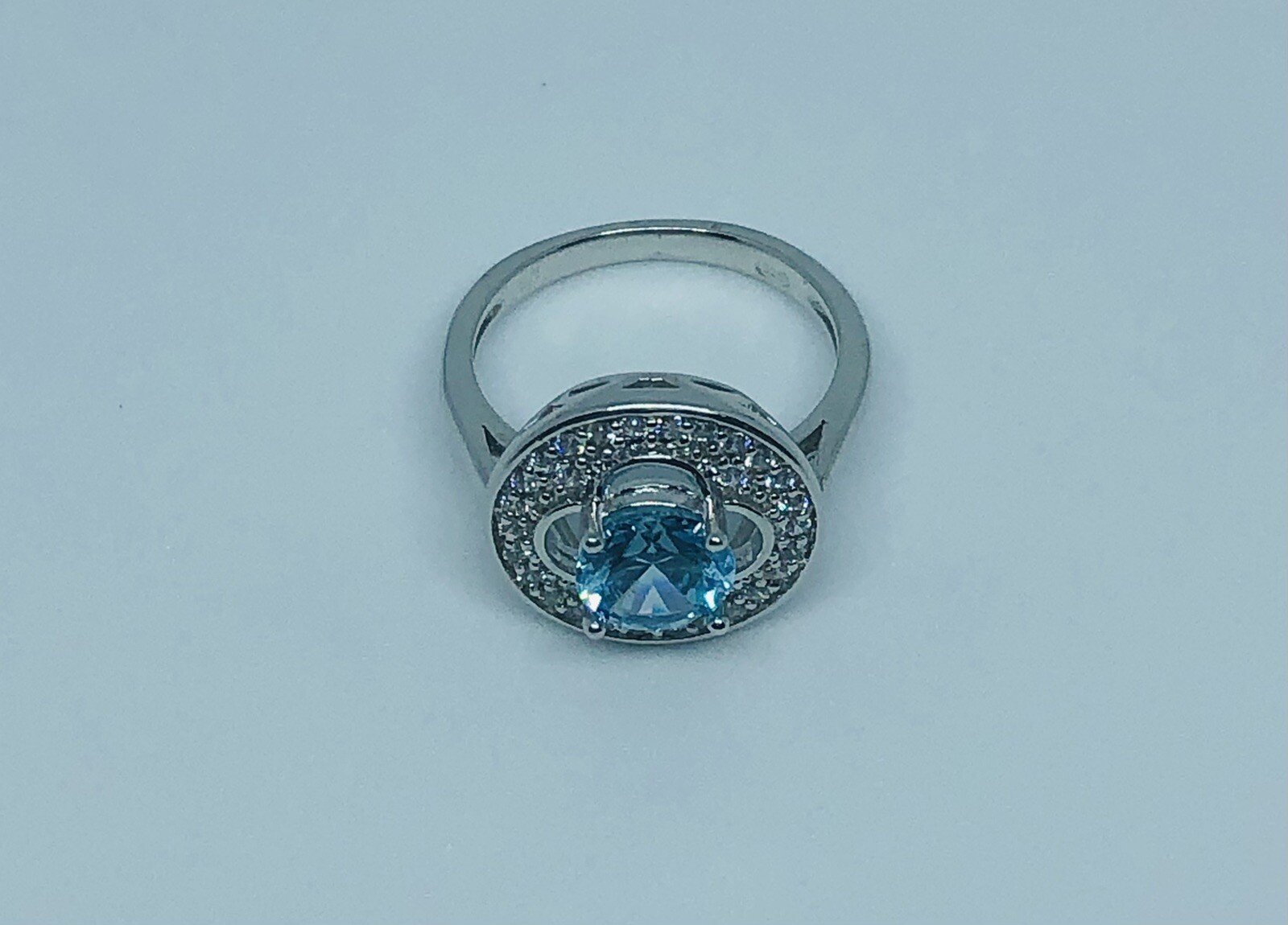 как выглядит 2CT Aquamarine and White Topaz 925 Sterling Silver Ring Jewelry Size 6 фото