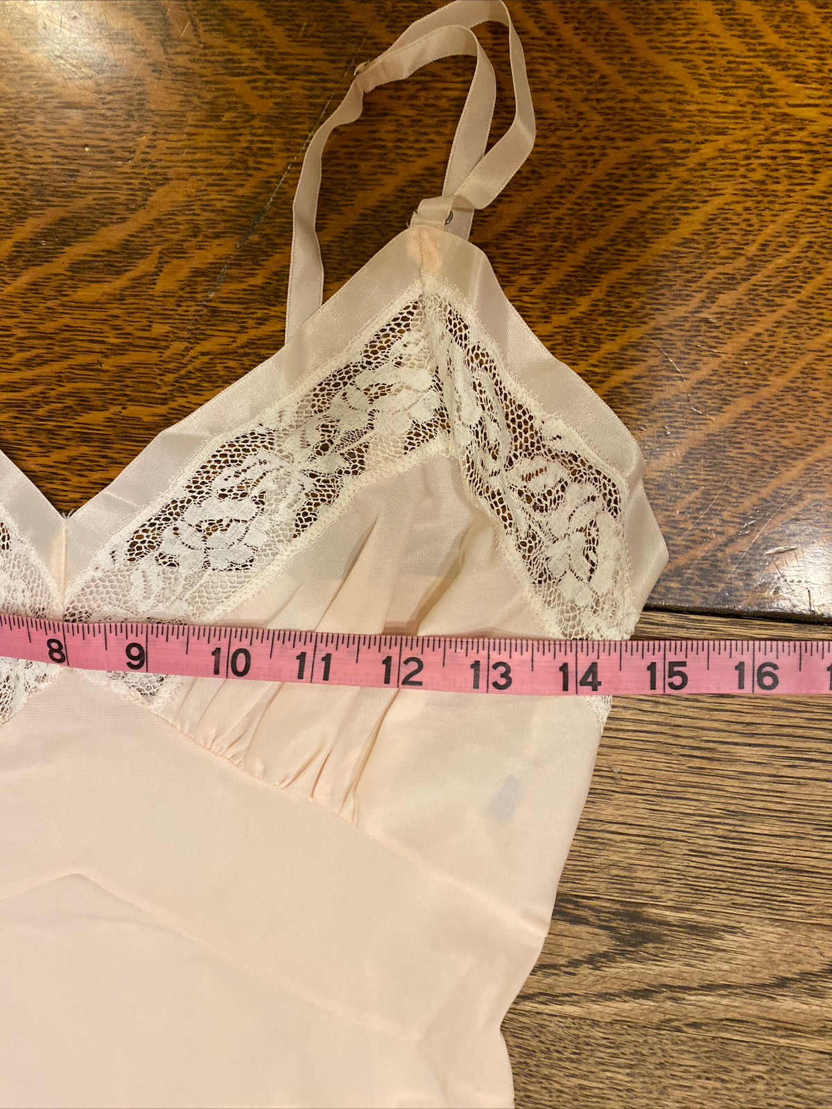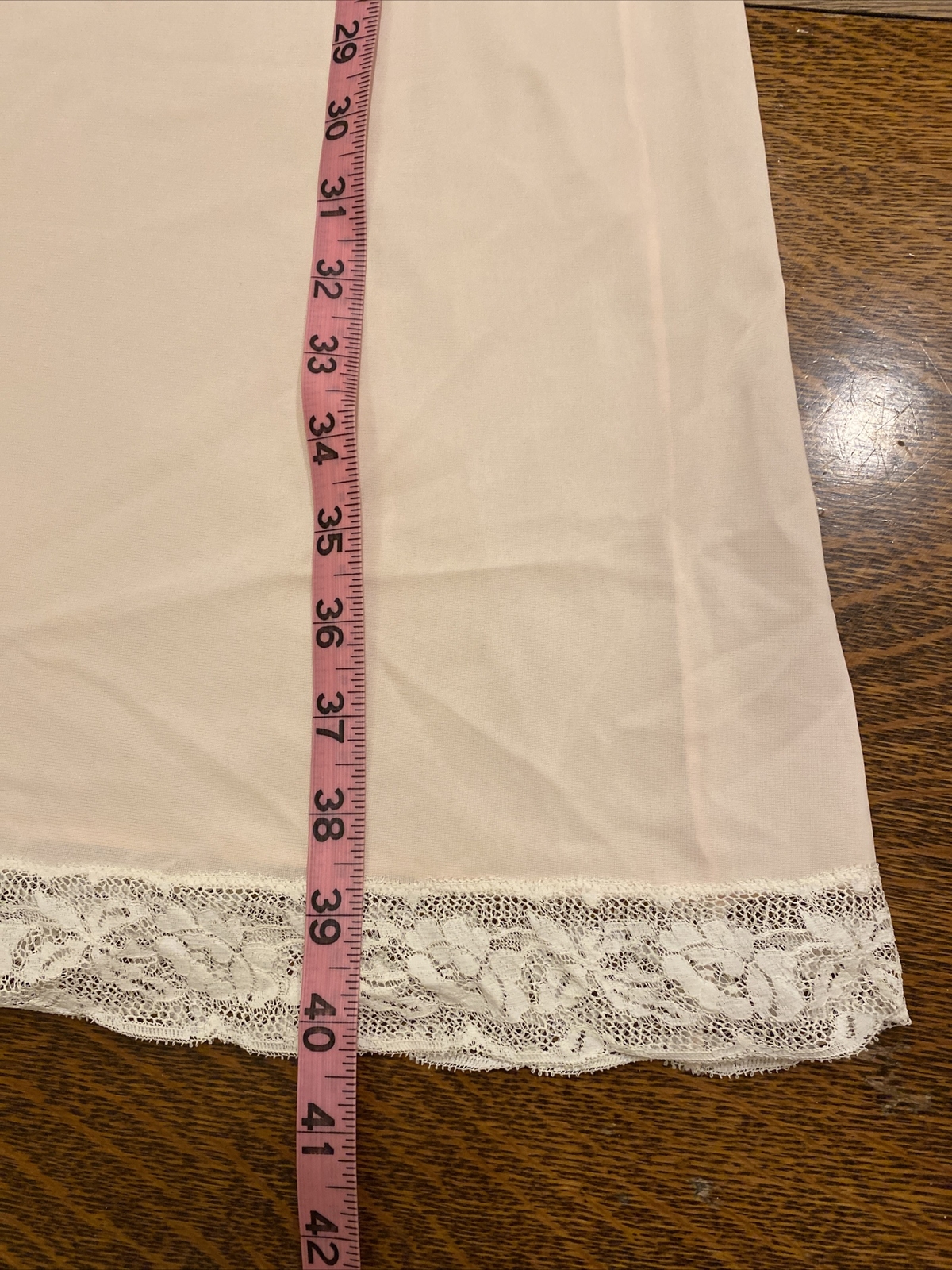 VTG 50s Tempo S/M Slip Lingerie Nightgown Pink Blush Satin W/ Lace Trim Midi