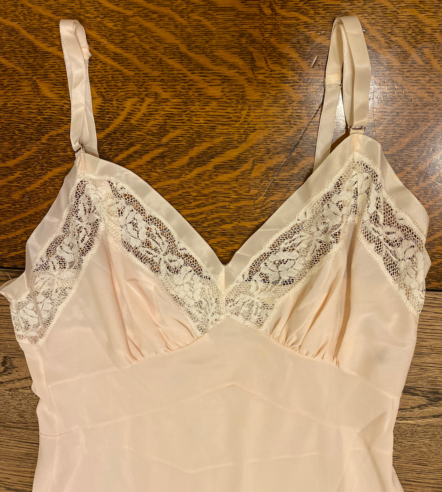 как выглядит VTG 50s Tempo S/M Slip Lingerie Nightgown Pink Blush Satin W/ Lace Trim Midi фото