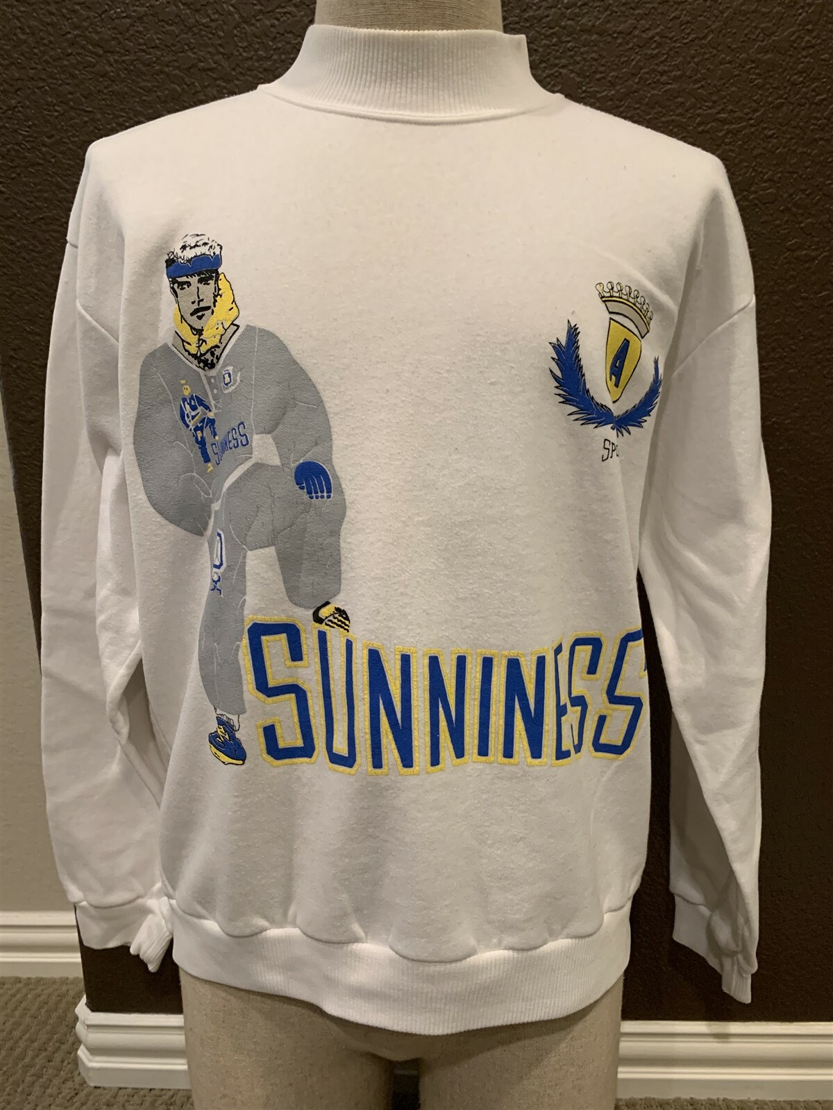 как выглядит Vintage 80s Sunniness Sports White Crewneck Sweatshirt Size L фото