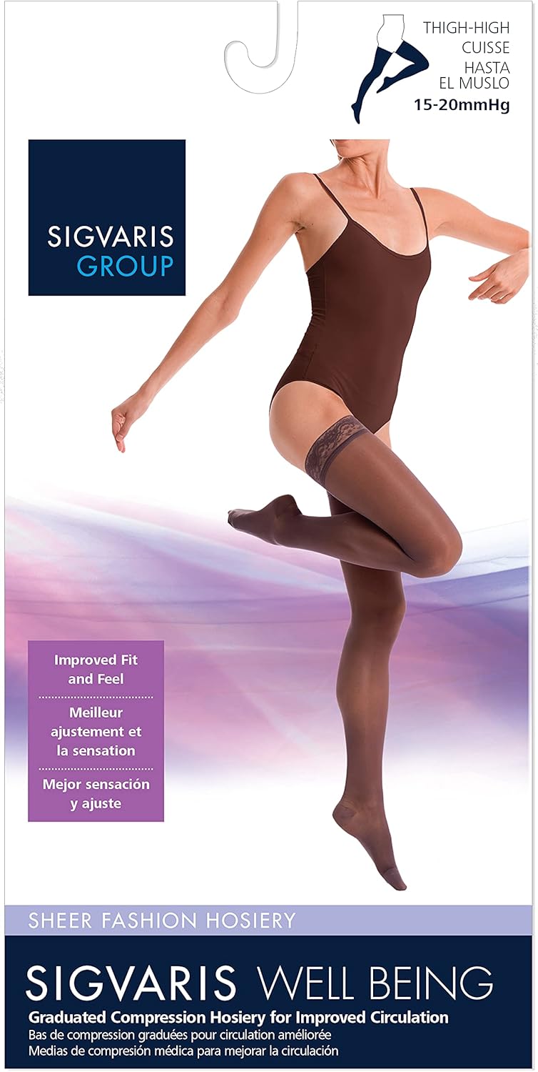 SIGVARIS Women's Sheer Fashion Thigh Highs 15-20 Black Size A