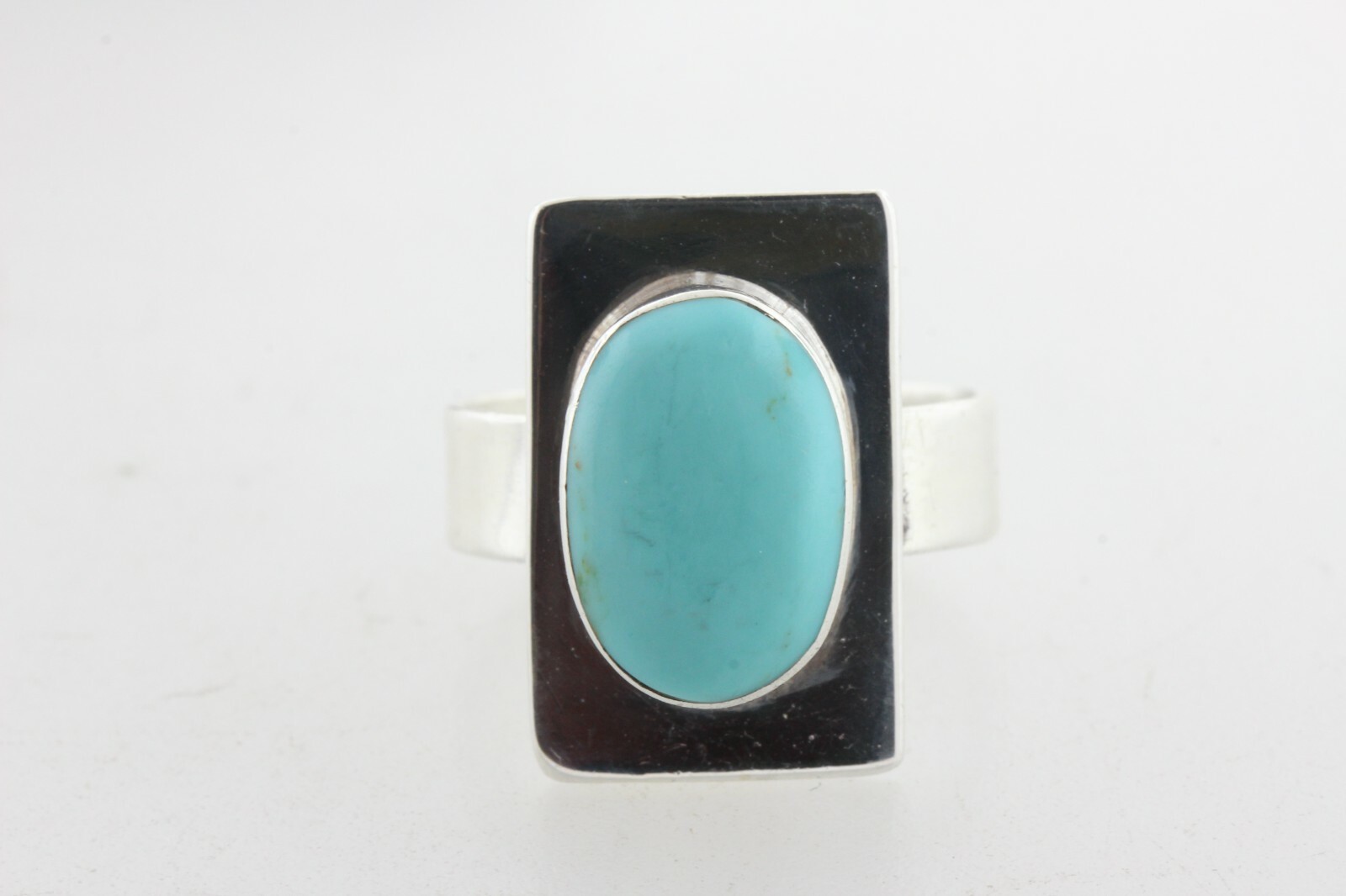 Mexico 925 Sterling Silver Southwestern Oval Turquoise Rectangle Front Ring Sz 9