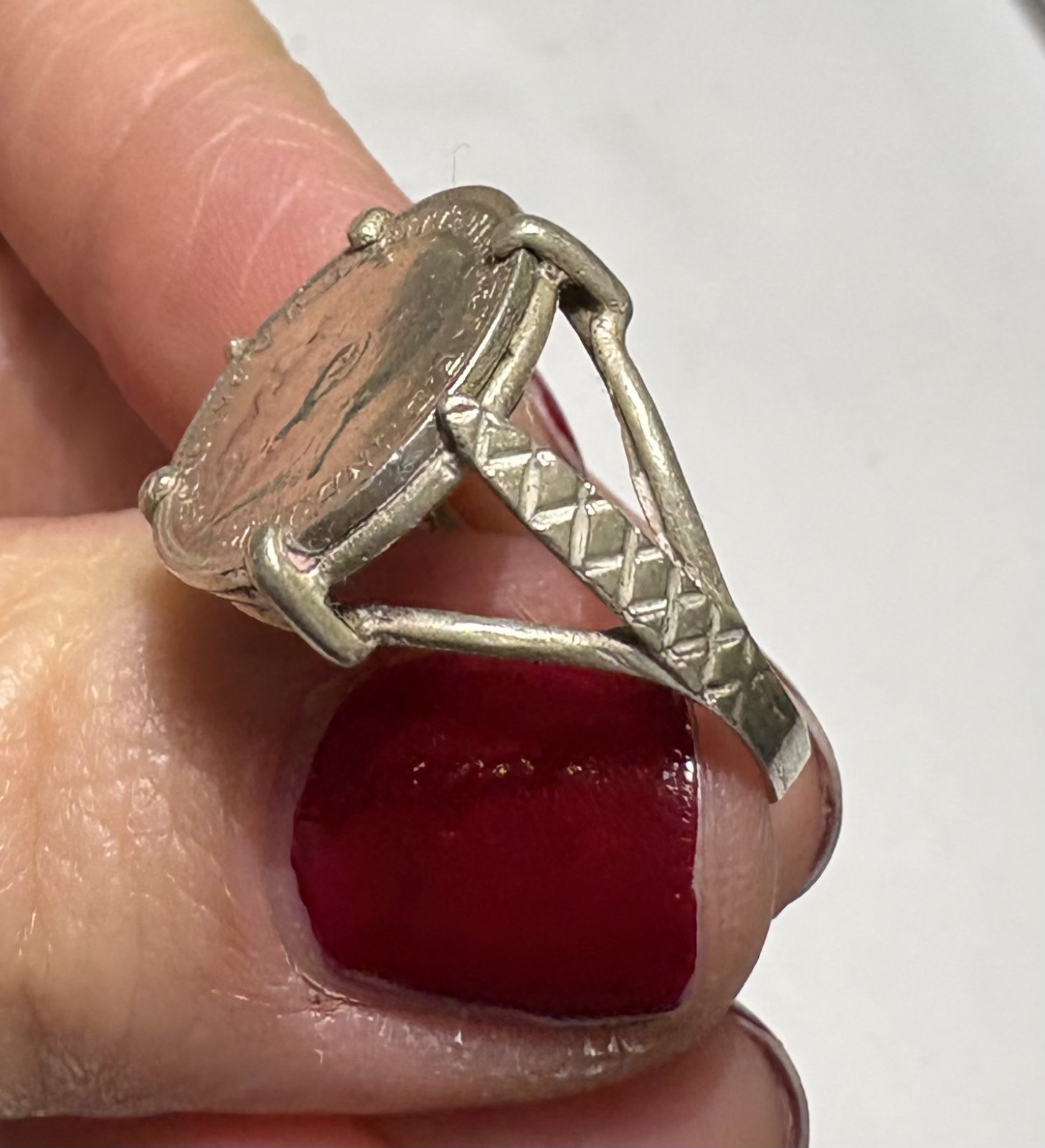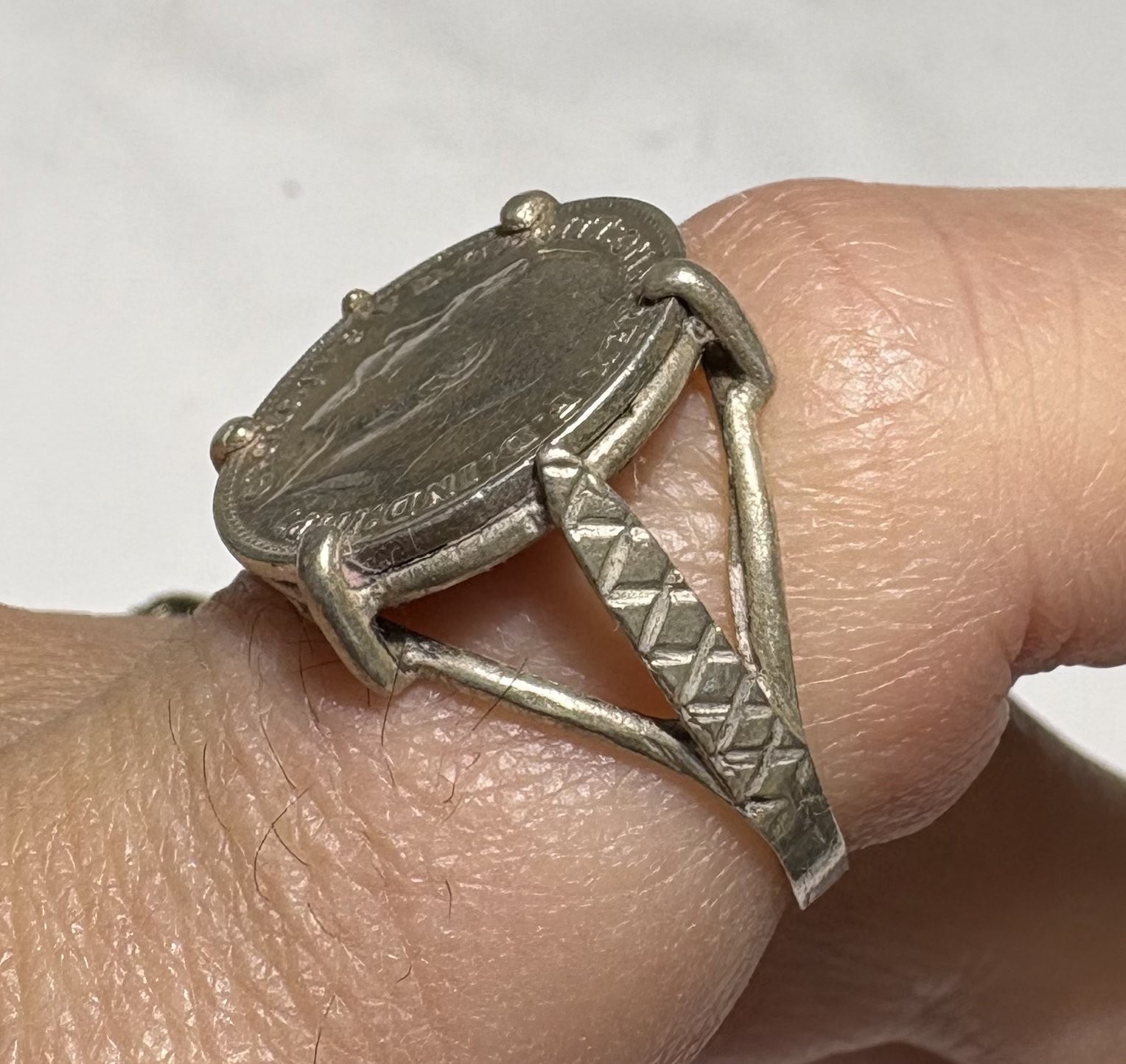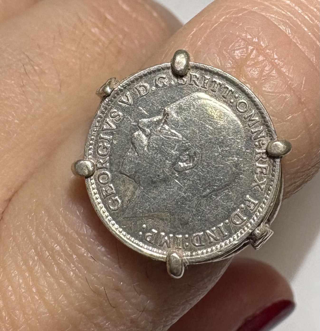 как выглядит 1917 King George 3 Three Pence Great Britain Coin Size 7 Silver 3.5g Ring фото