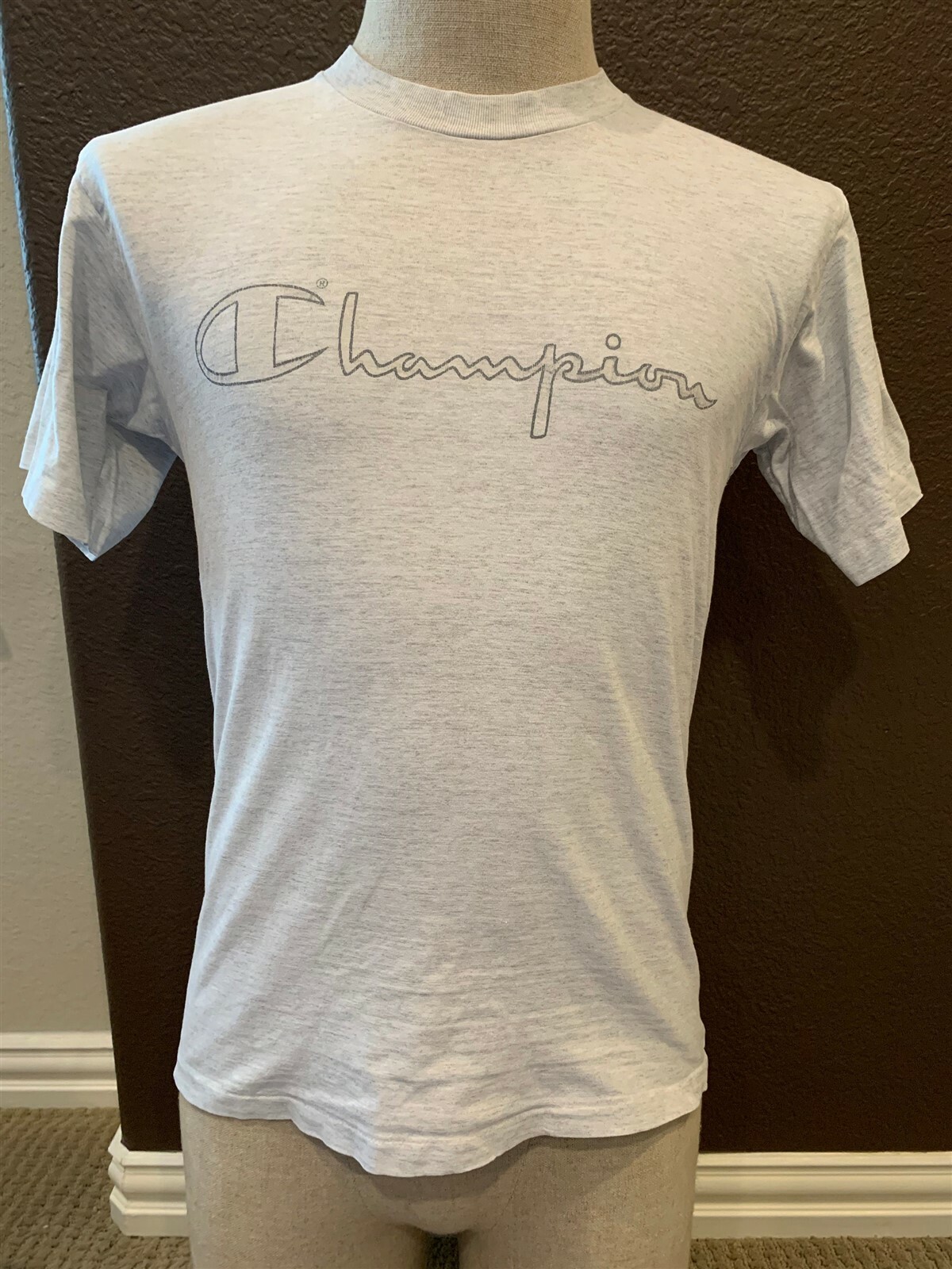 как выглядит Vintage 80s Champion Logo Grey T Shirt Size M фото