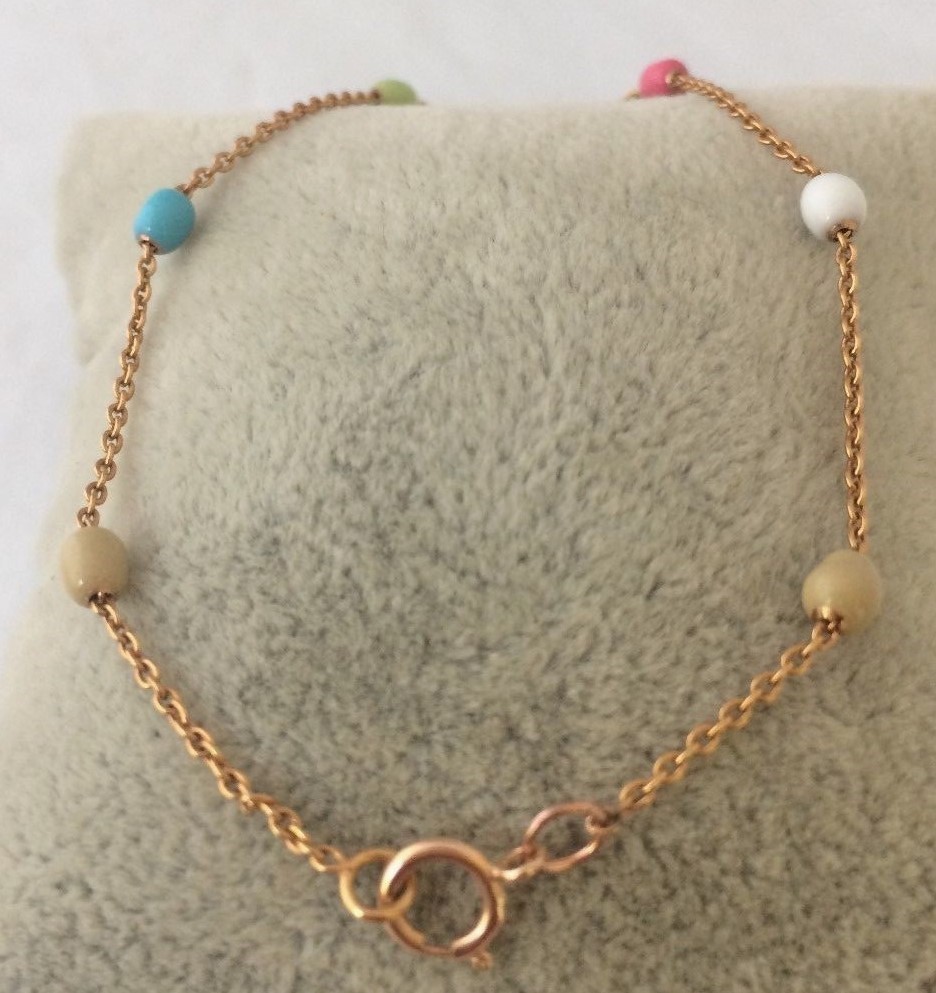 как выглядит 14k Rose Gold layered multi color Beaded Bracelet 7 1/2 BFA33 фото
