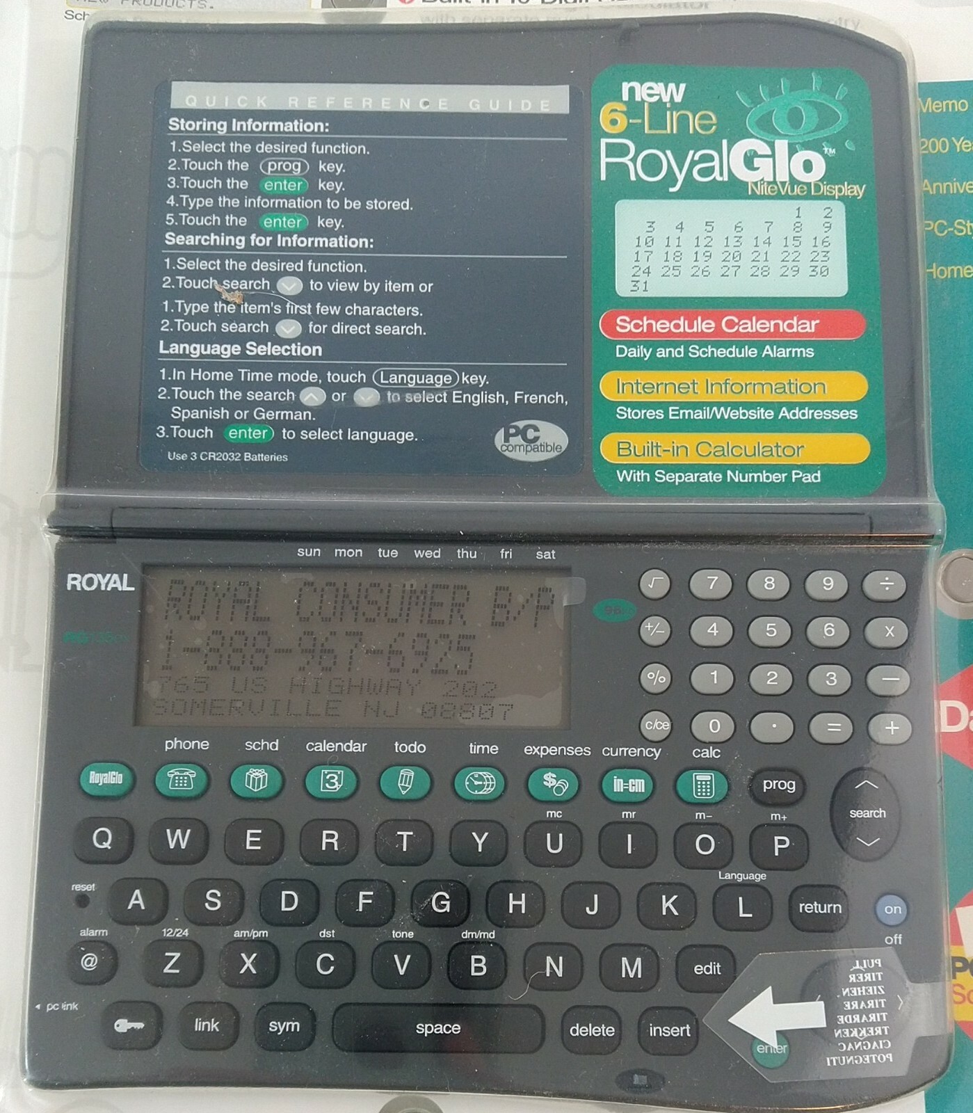 Royal Personal Organizer 3,000 Business LCD Display Electronic Glo Display