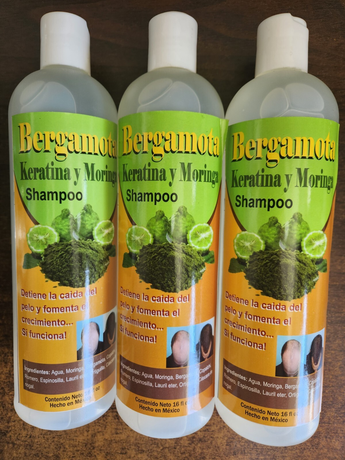 3 NEW SHAMPOO BERGAMOT WITH KERATIN AND MORINGA NET WT 16 FL OZ EACH