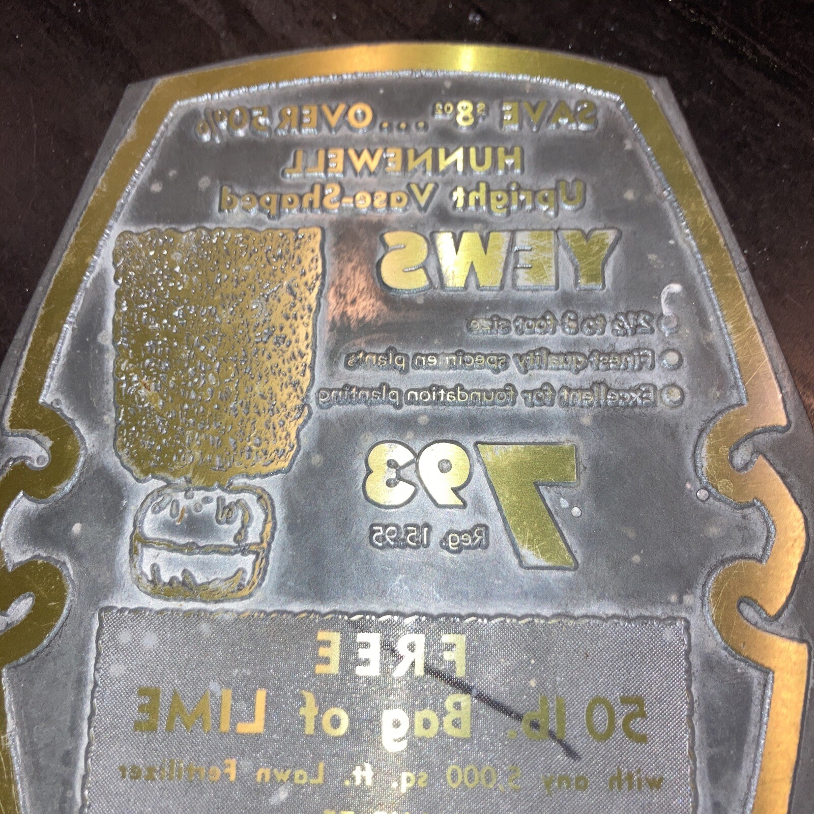 Oak Hill Nurseries, Westwood, MA Massachusetts METAL PRINTING PLATES ADVERTISING