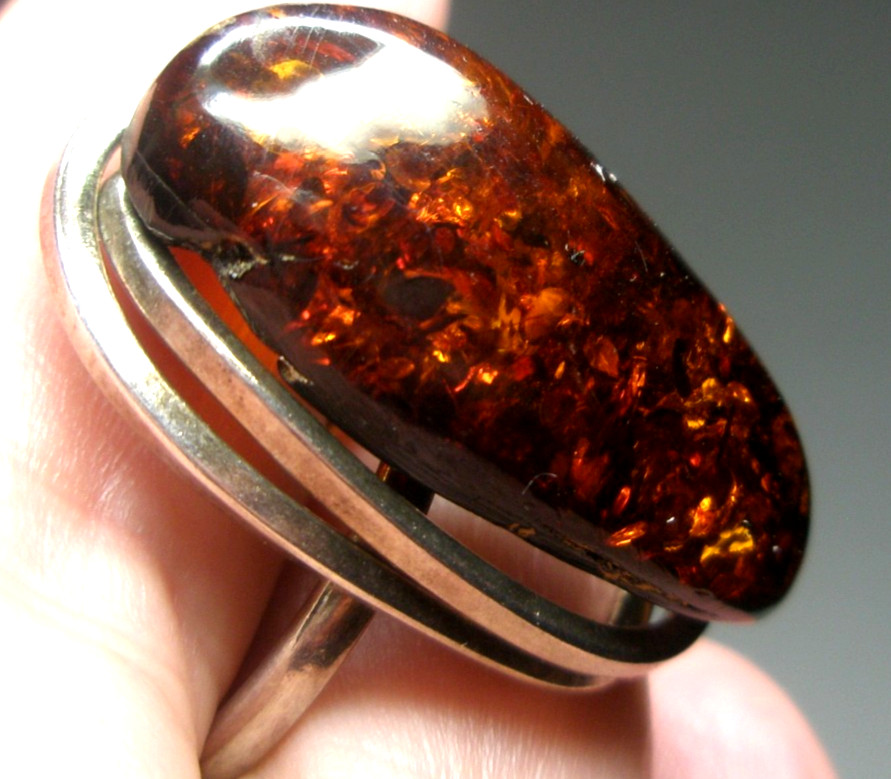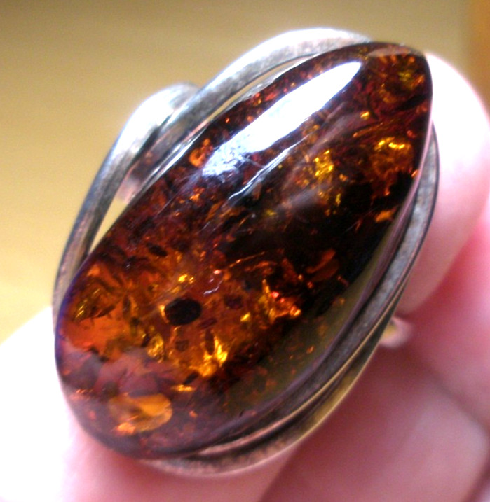 как выглядит Genuine Baltic Amber Ring Dark Cognac color фото