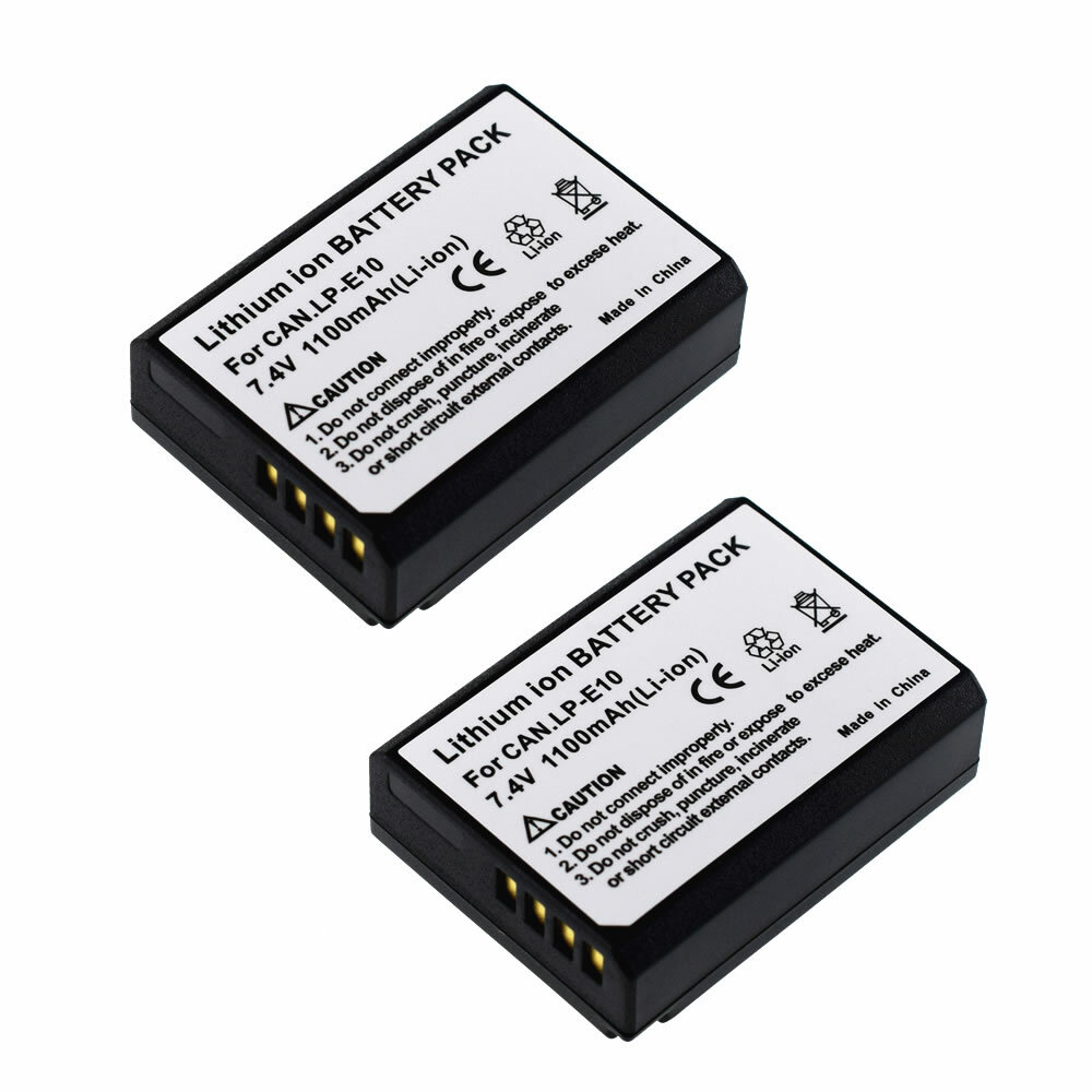 2XCamera Battery Pack For Canon Rebel T3 T5 T6 T7 LP-E10 LPE10 1100D 1300D 1500D