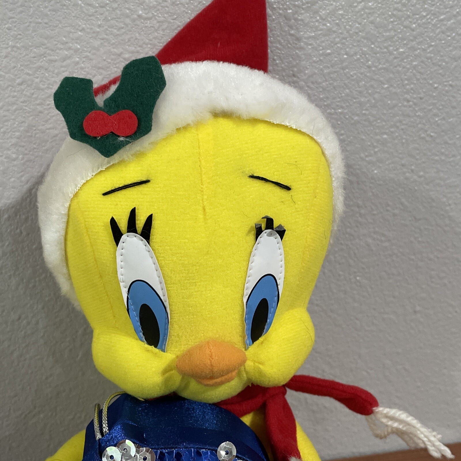 как выглядит Rare Tweety Bird Plush Christmas Santa Hat Present Gift Vtg 1997 Looney Tunes фото