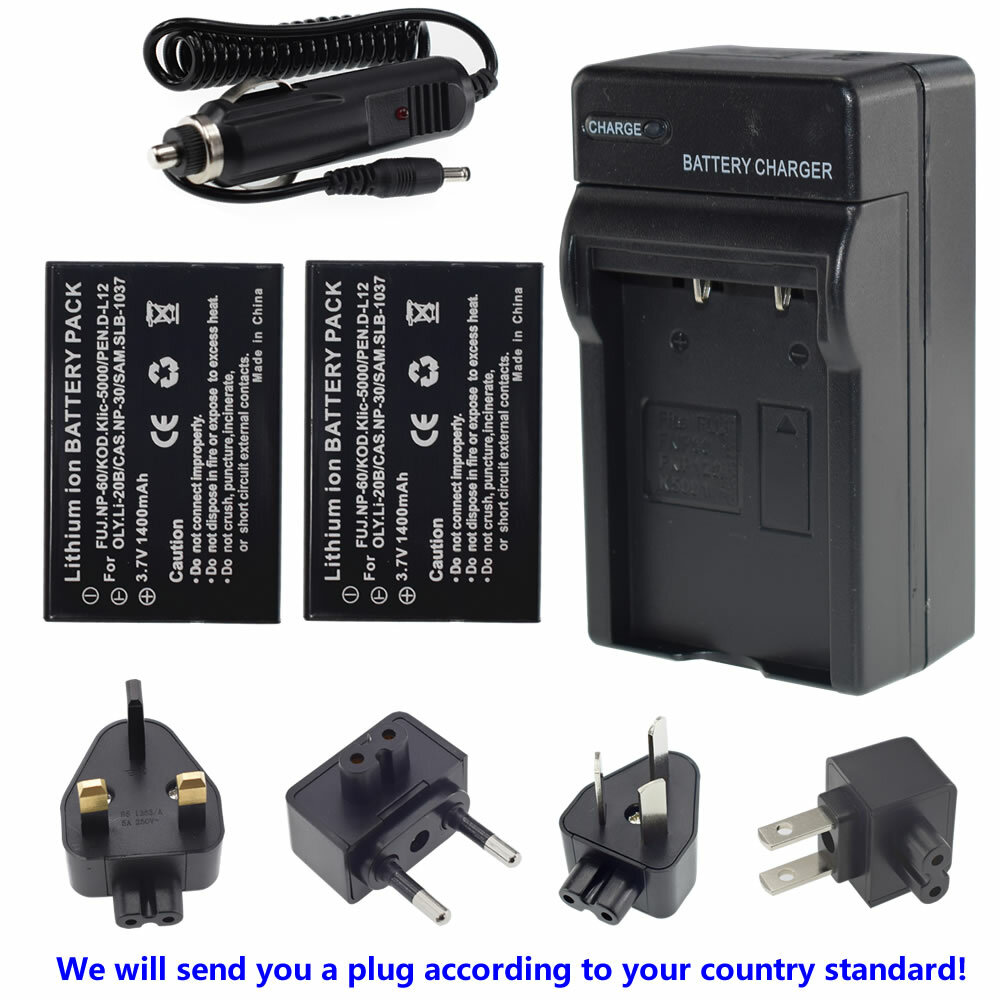 2X Battery Wall Charger for Pentax D-Li2 PENTAX Optio 330 Optio 330RS 430RS Cam