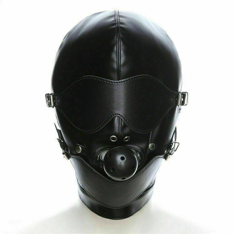 как выглядит Adult full Hooded Blindfold Head Mask PU Faux Leather club party Cosplay Costume фото