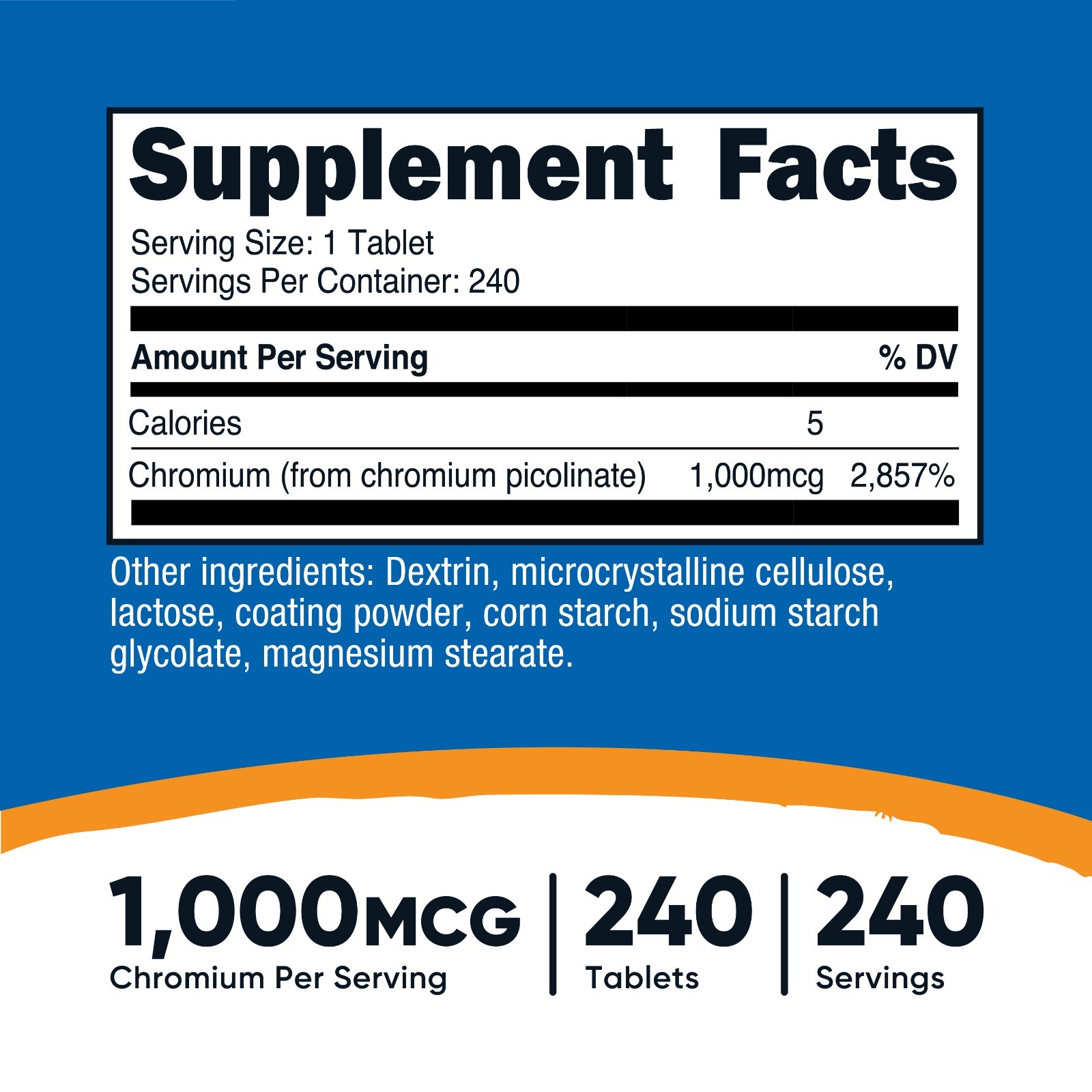 Nutricost Chromium 1000mcg, 240 Tablets - Gluten Free, Non-GMO