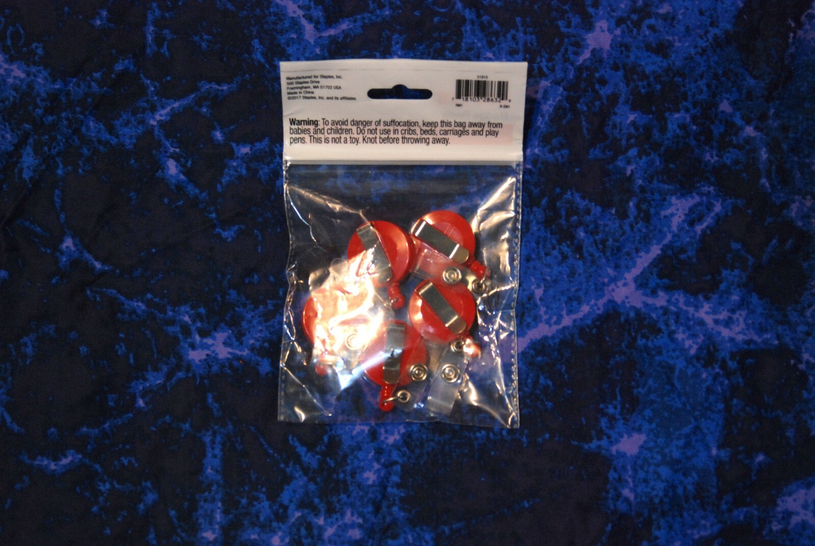 Staples Brand 33 Red and White Retractable ID Badge Reel 5-Pack