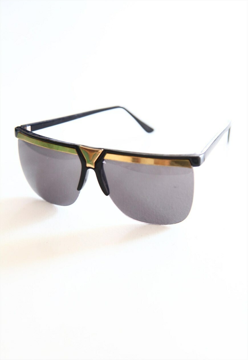 Vintage Black Half Rimless Frame, Dark Grey lenses