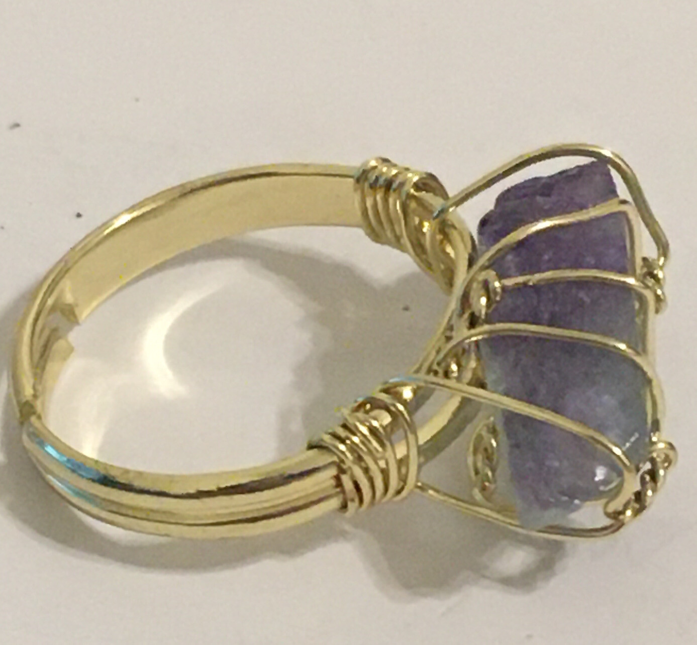 florite raw stone wire wrapped ring adjustable to size 6, 7 , 8 9
