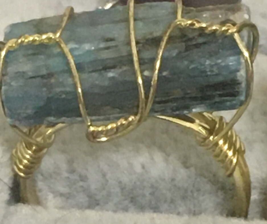 apatite raw stone wire wrapped ring adjustable to size 6,7 8