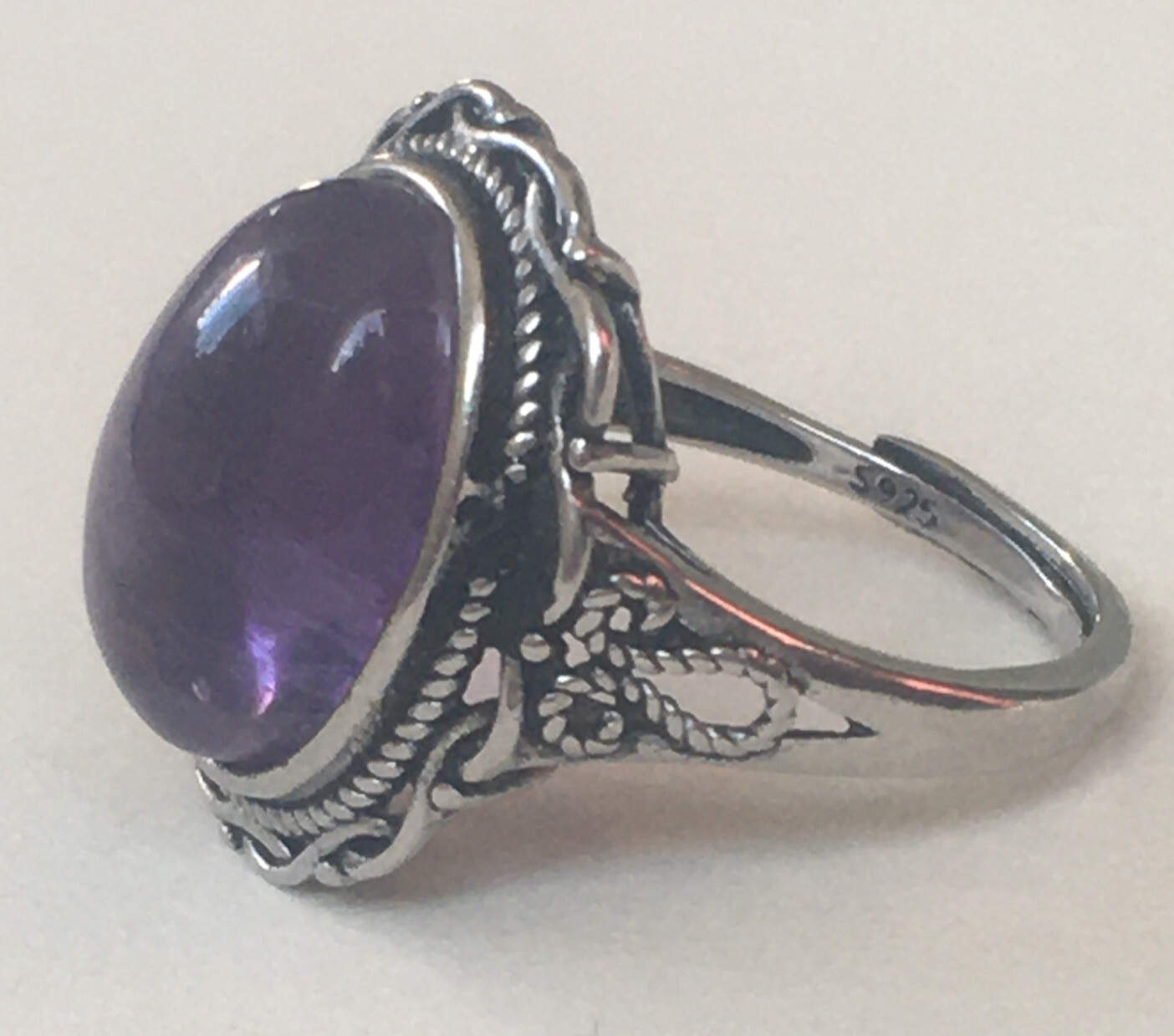 как выглядит amethyst ring s925 adjustable to size 6,7 8 фото