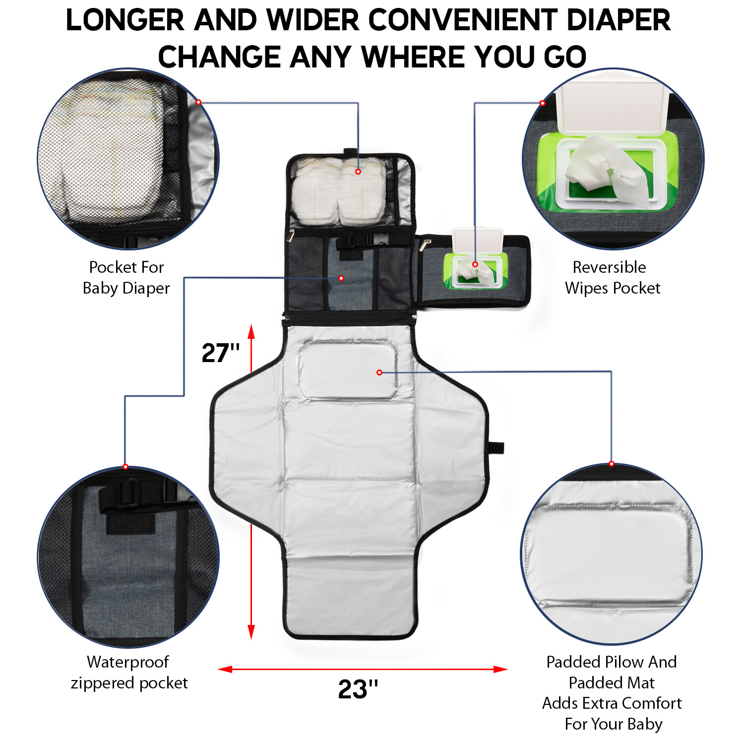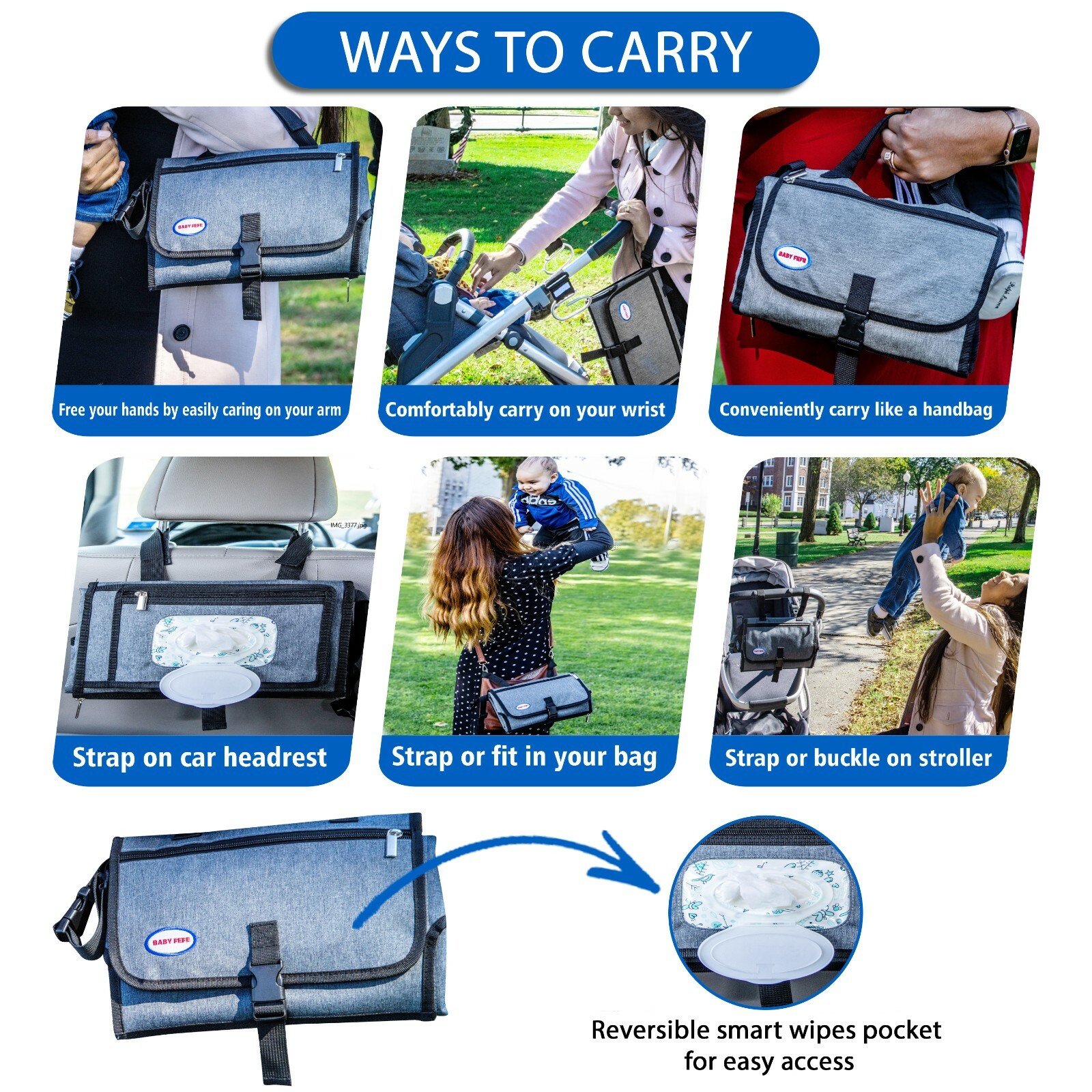 Baby Changing Pad by BabyFefe - Detachable Diaper Changing Pad with Wipes Pocket