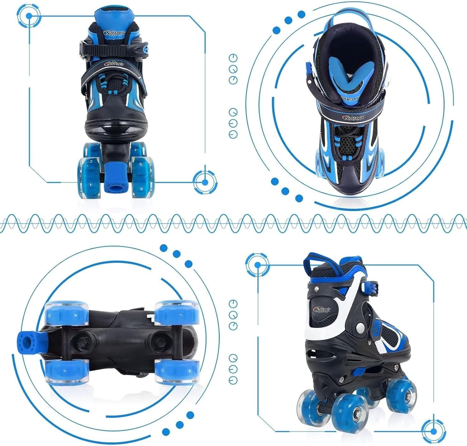 как выглядит Nattork 3Sizes Roller Skates Adjustable Roller Skates Kids with Light up Wheels фото