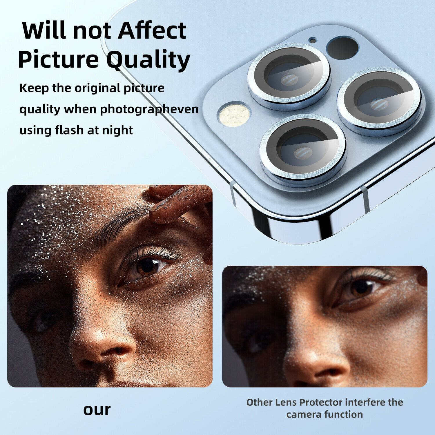 For iPhone 13 14 11 16 17Pro Max Metal Ring Tempered Glass Camera Lens Protector