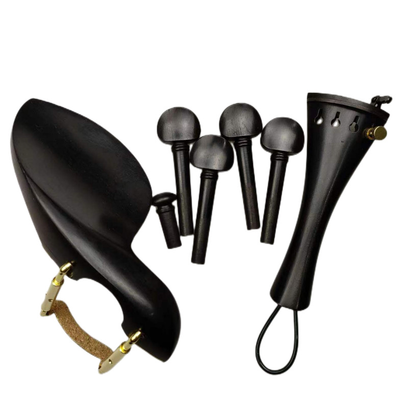 Ebony Violin Parts 4/4 Pegs Endpin Tailpiece Chinrest installed screw finetuner