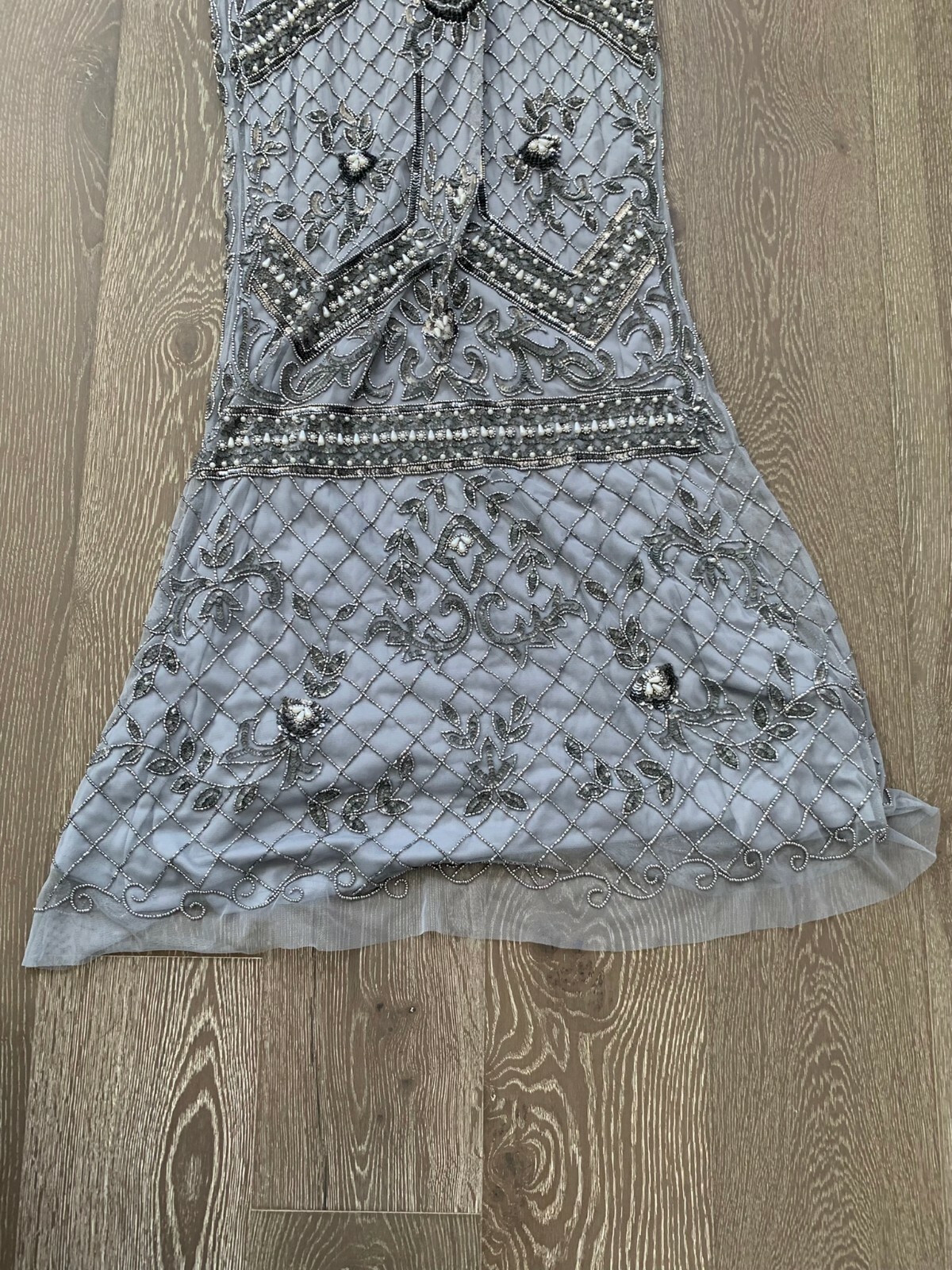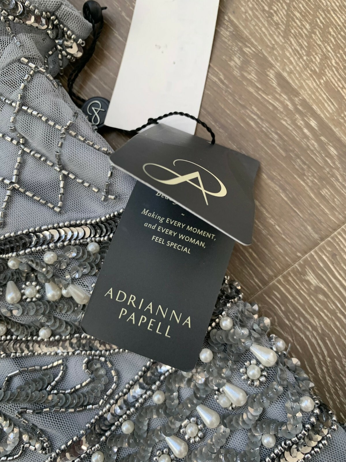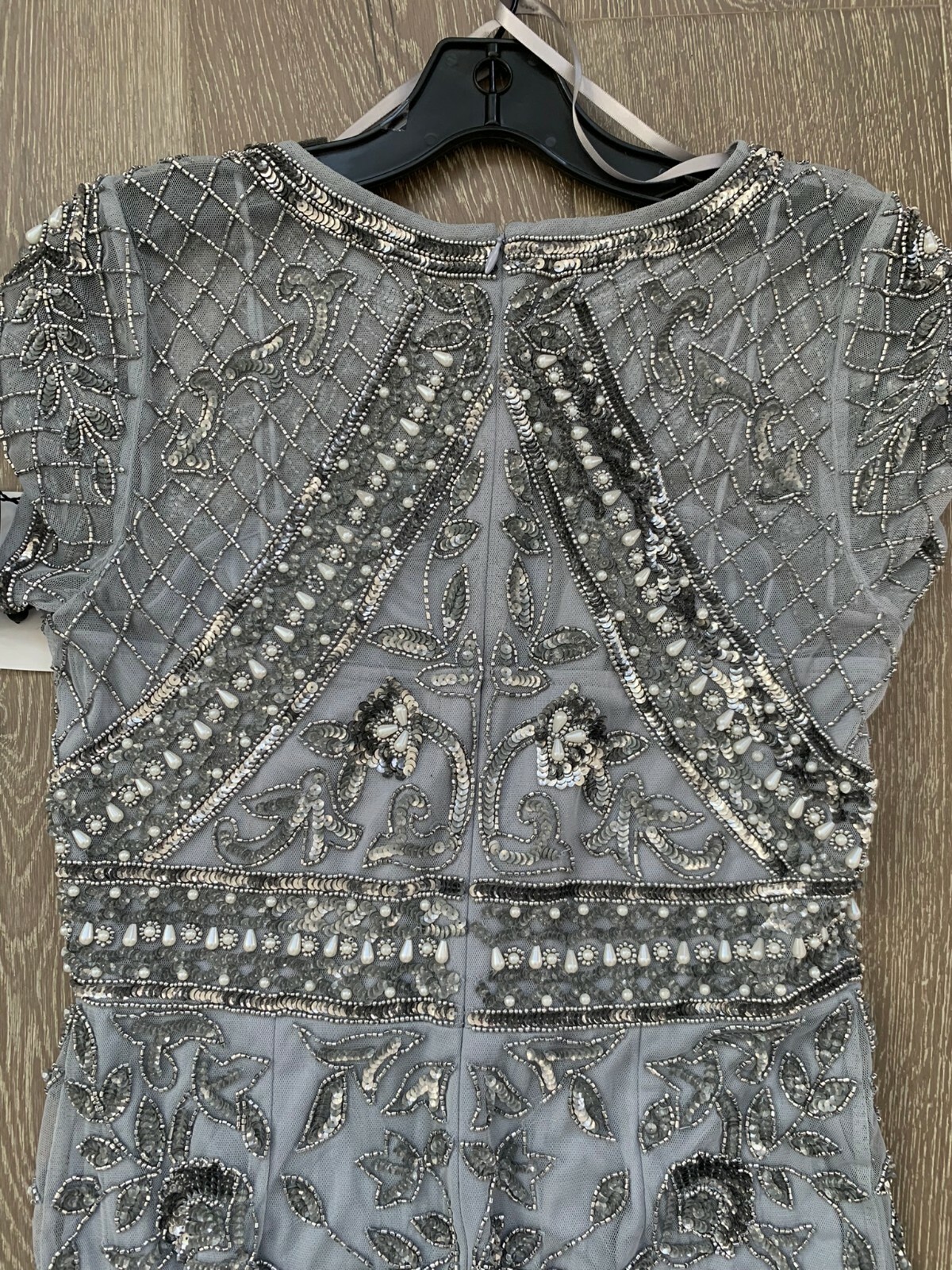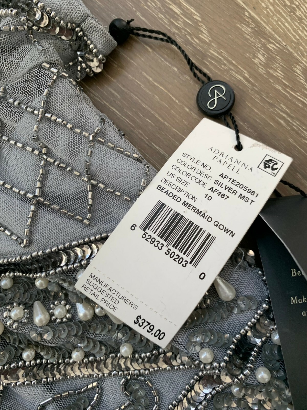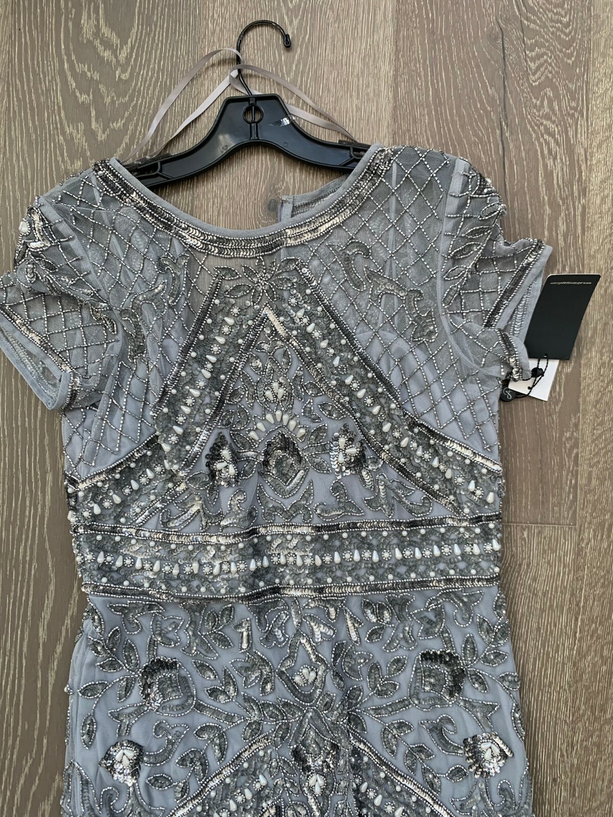 как выглядит NWT Adrianna Papell Beaded Mermaid Gown in Silver Mist size 10 фото
