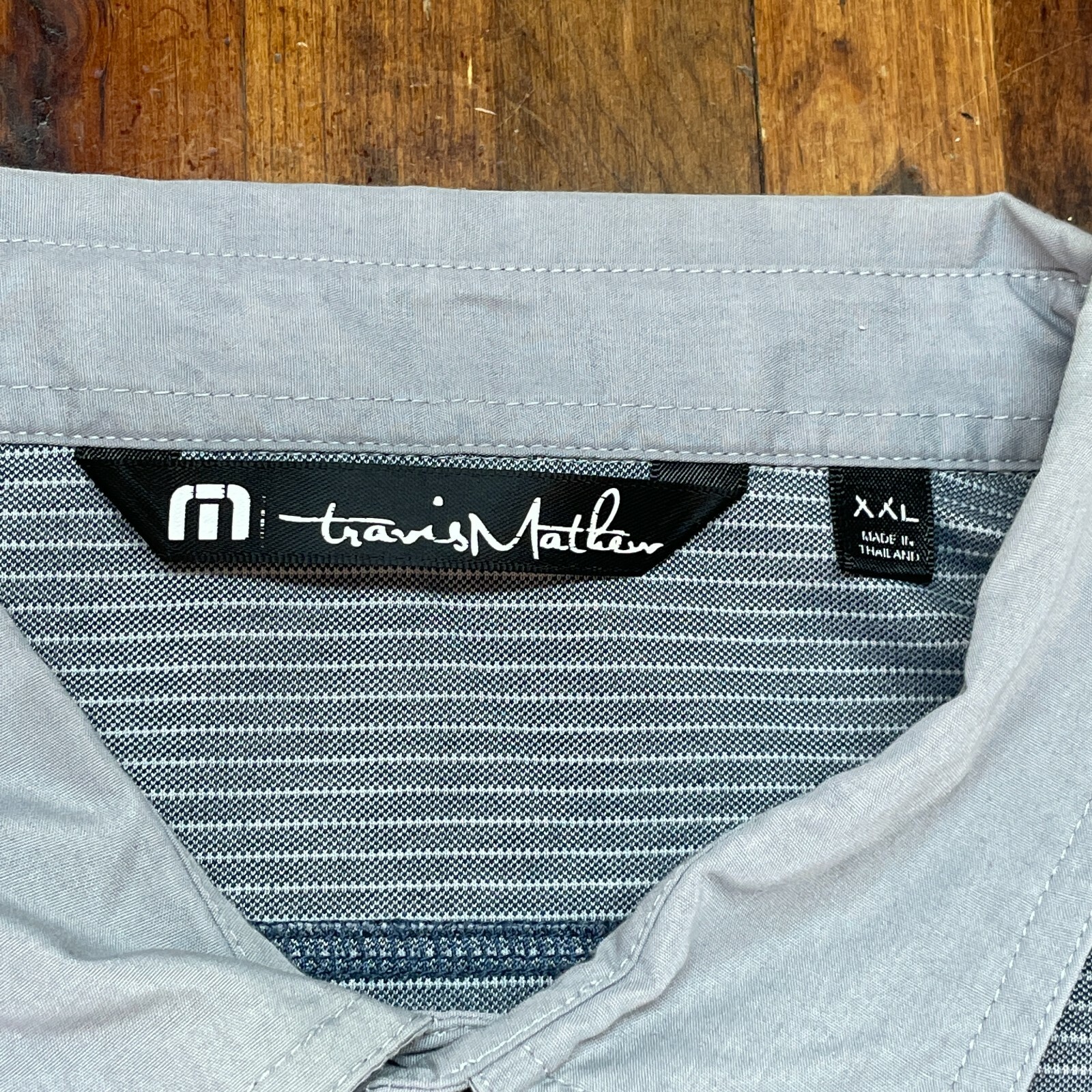 Travis Mathew Polo Men's XL Gray Short Sleeve Collared Pocket Striped