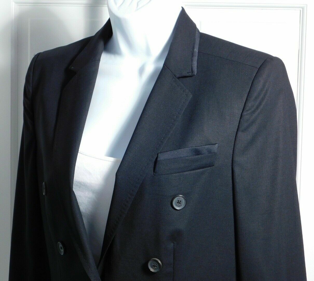 как выглядит AUTHENTIC GUCCI Womens Black Satin Trim Wool Single Breasted Blazer Jacket Sz 40 фото