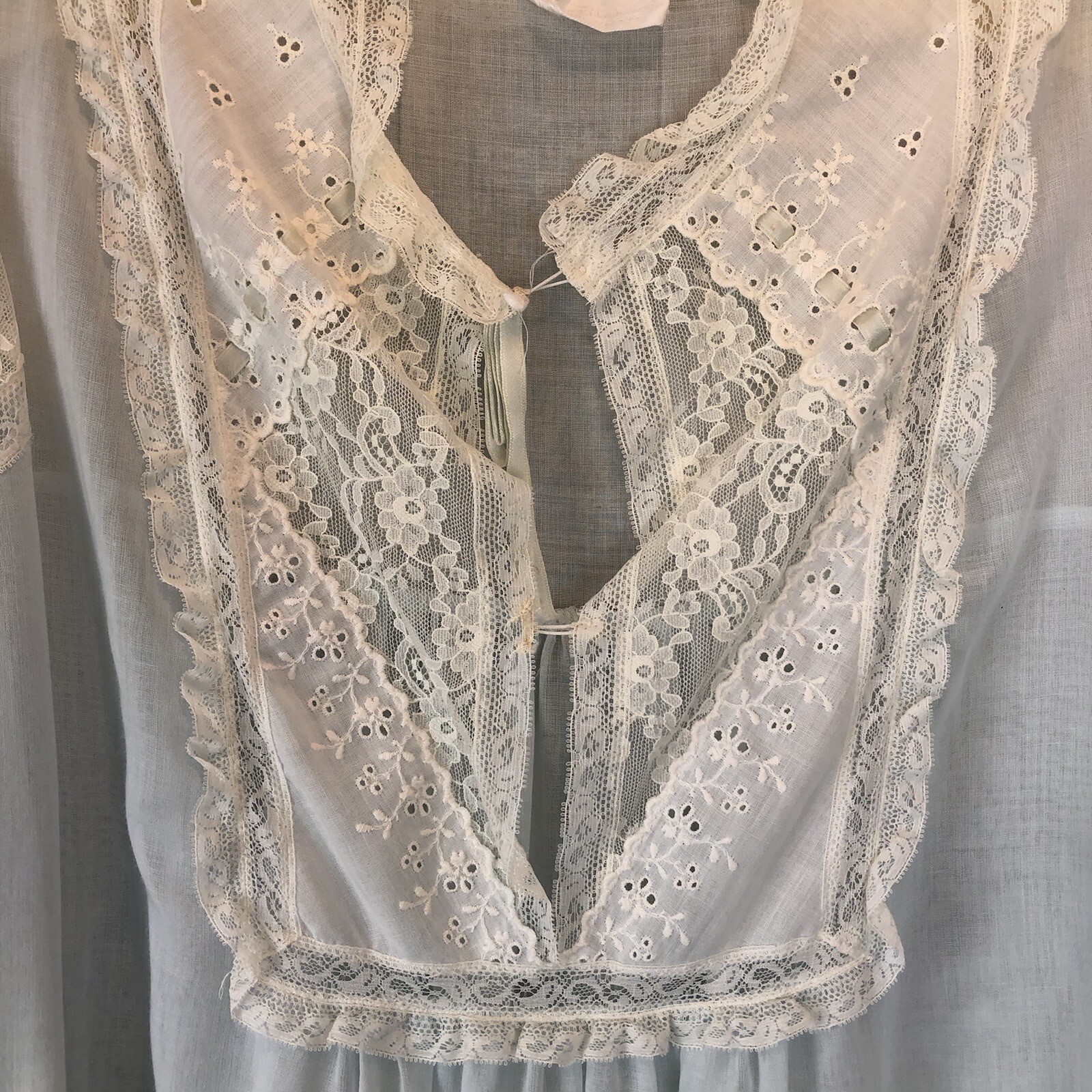 как выглядит nightgown vintage blue thin material lace trim Large фото