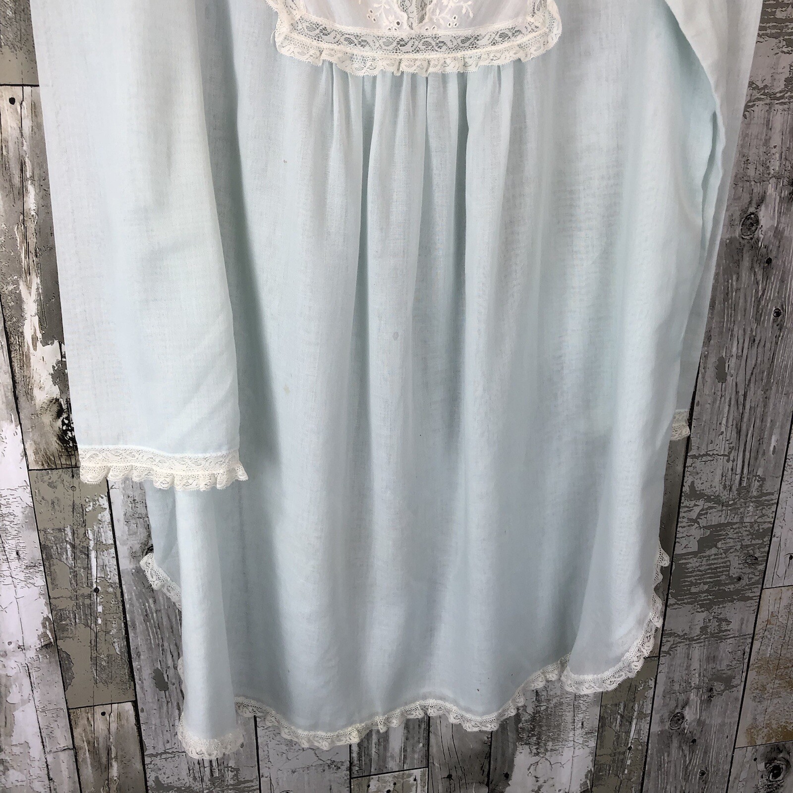 nightgown vintage blue thin material lace trim Large