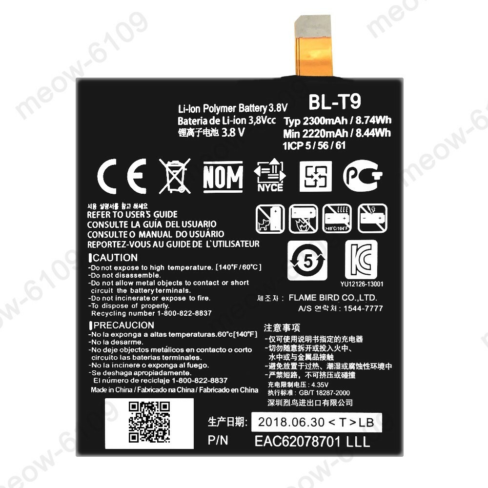 New Replacement Battery BL-T9 EAC62078701 For LG Google Nexus 5 D820 2300mAh