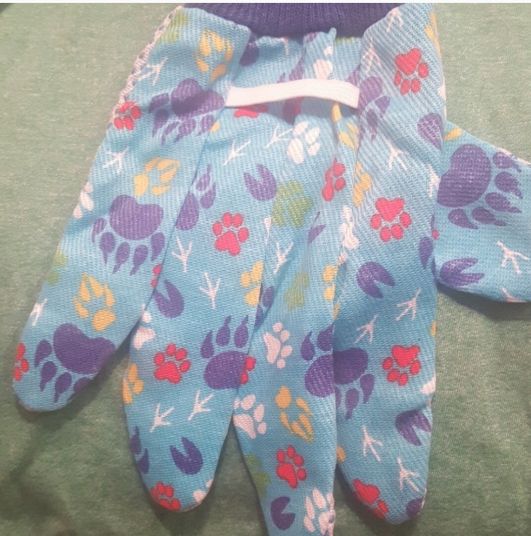BLUE GARDENING GLOVES W/PAWPRINT DESIGN