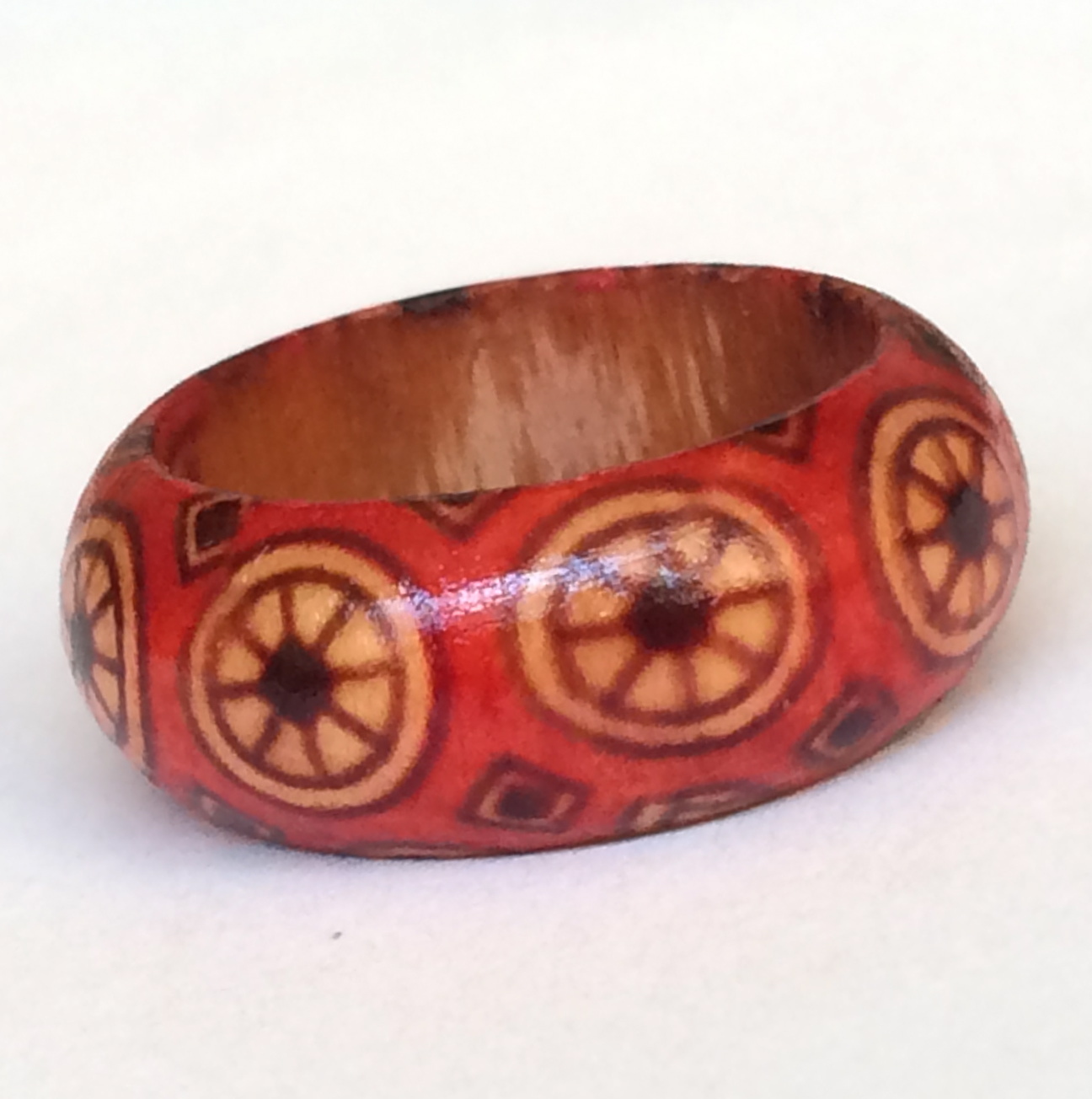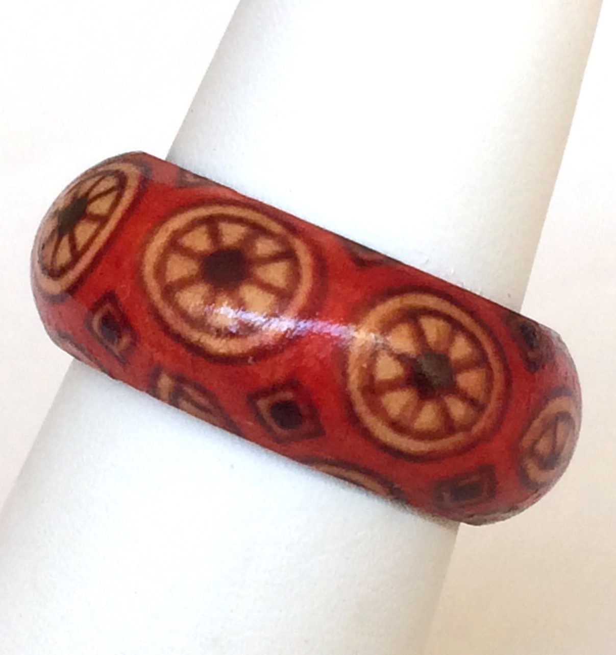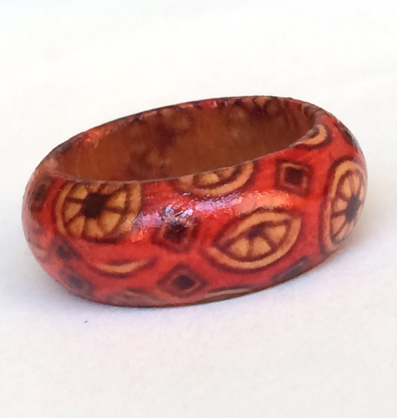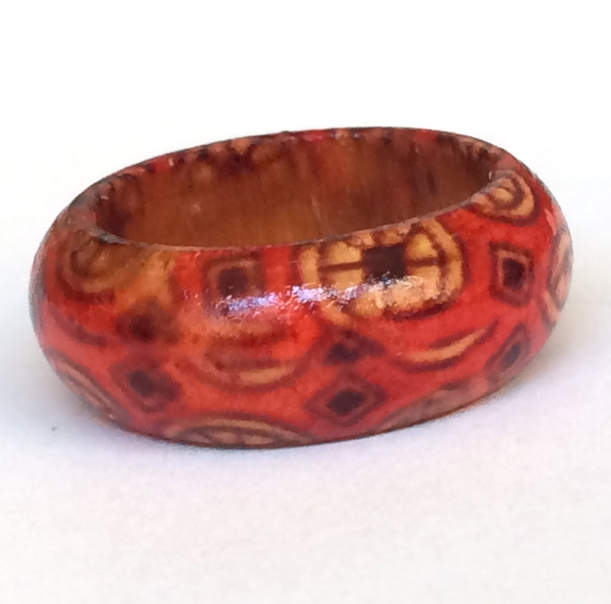 Natural Wood Tribal Ring Size 5 6 7 8 Band Handmade Red Organic Hand Painted