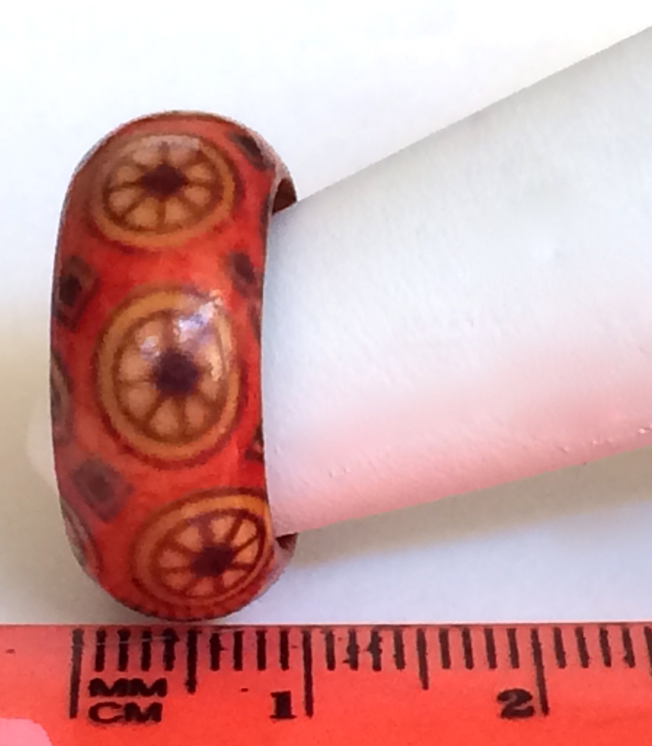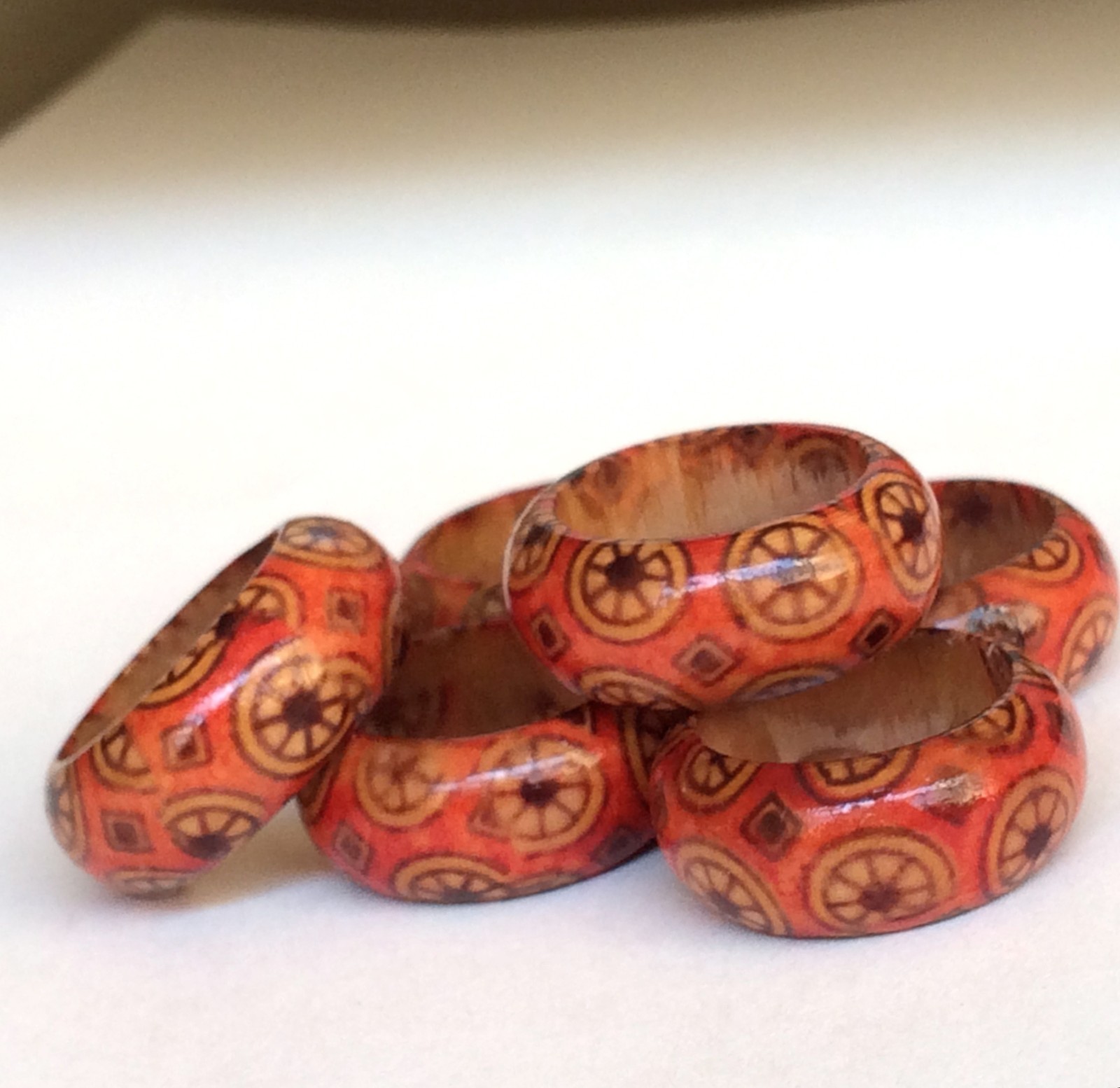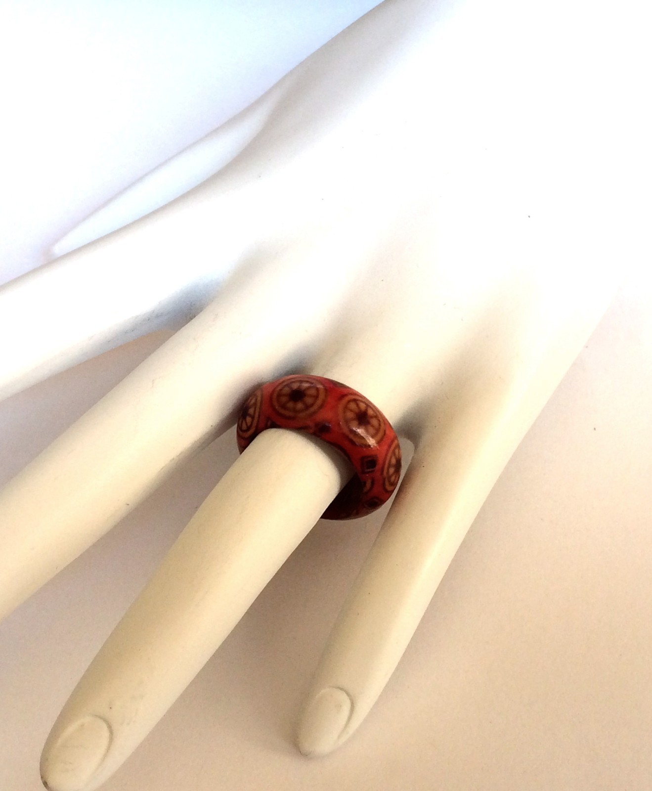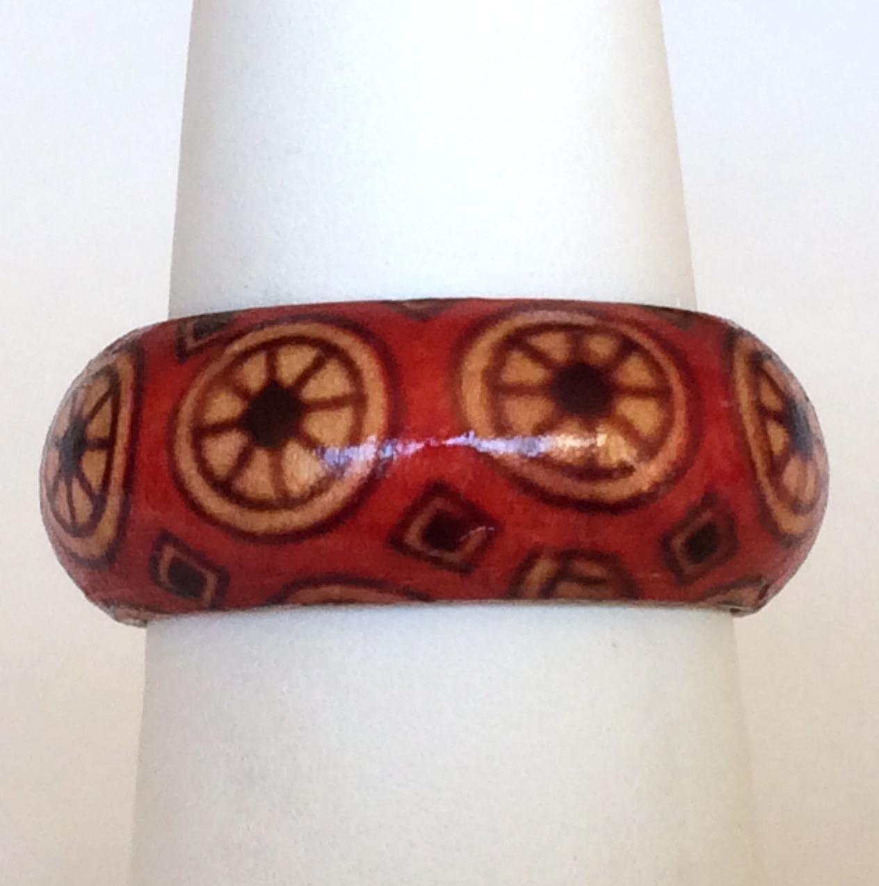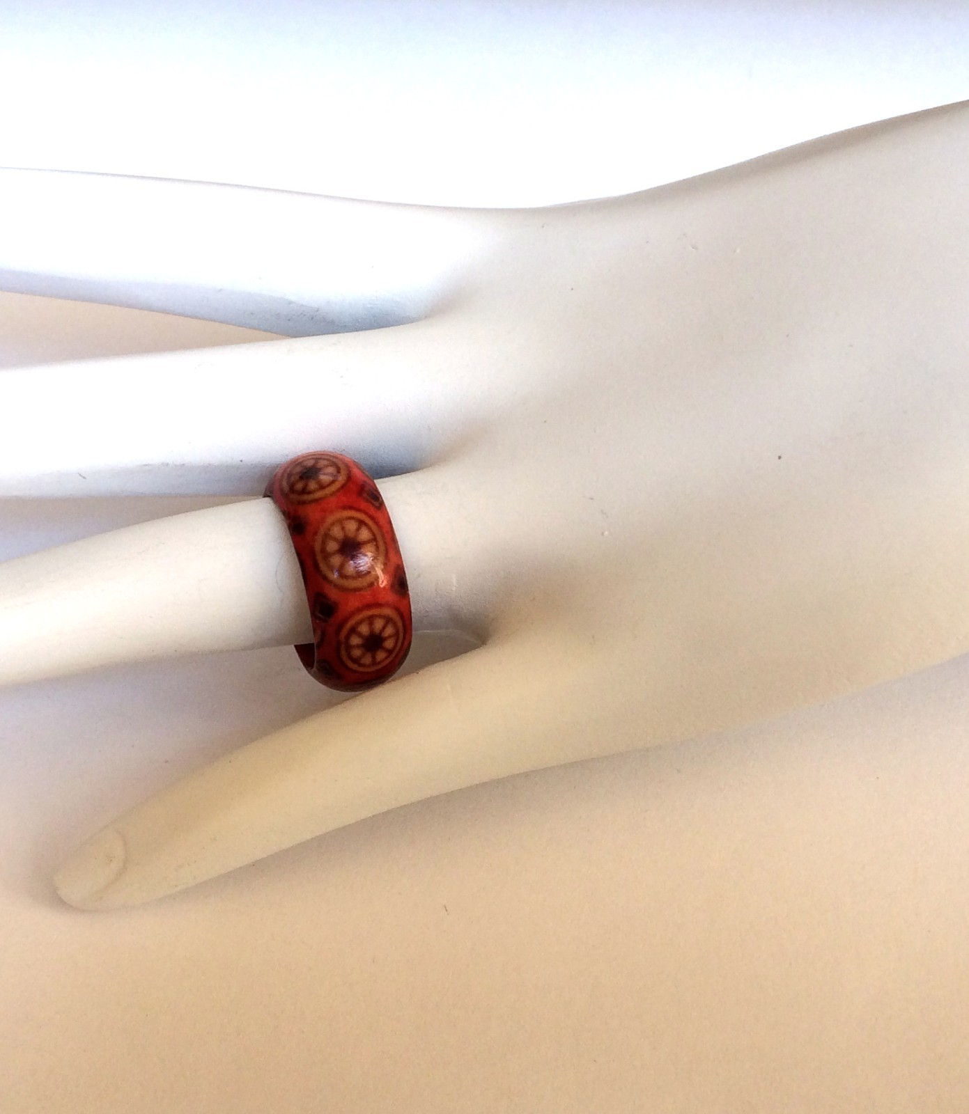 Natural Wood Tribal Ring Size 5 6 7 8 Band Handmade Red Organic Hand Painted