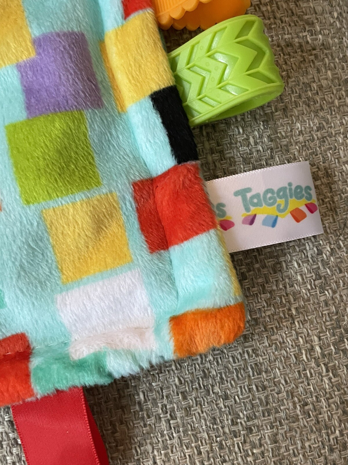Bright Starts Taggies Baby Lovey Security Blanket Colorful Squares Tags Aqua 12