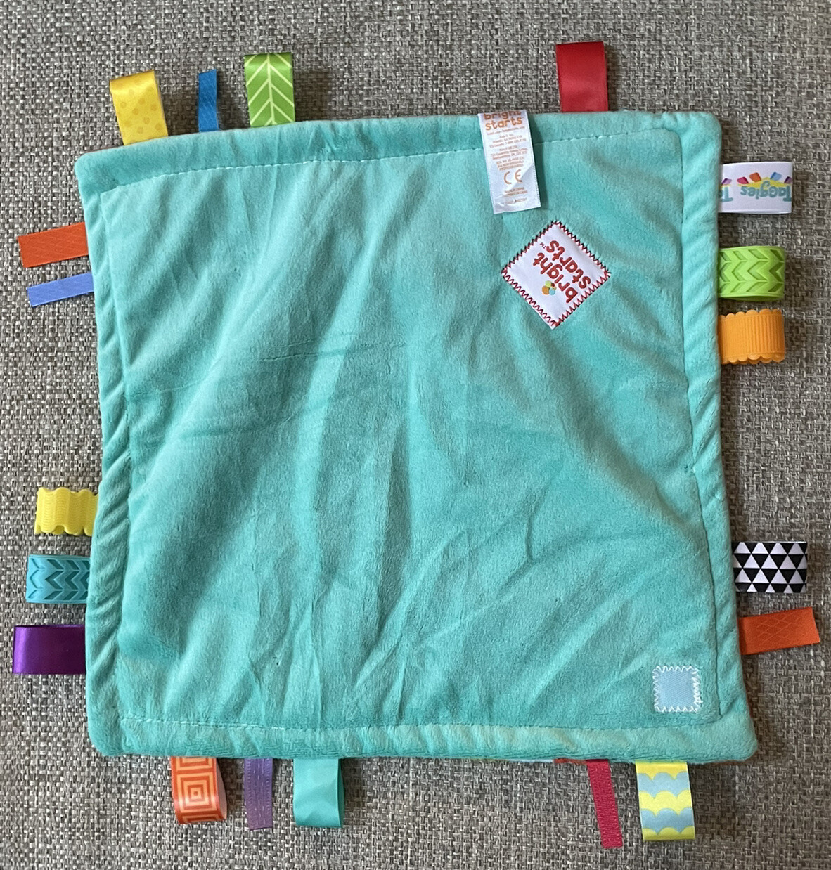 как выглядит Bright Starts Taggies Baby Lovey Security Blanket Colorful Squares Tags Aqua 12" фото