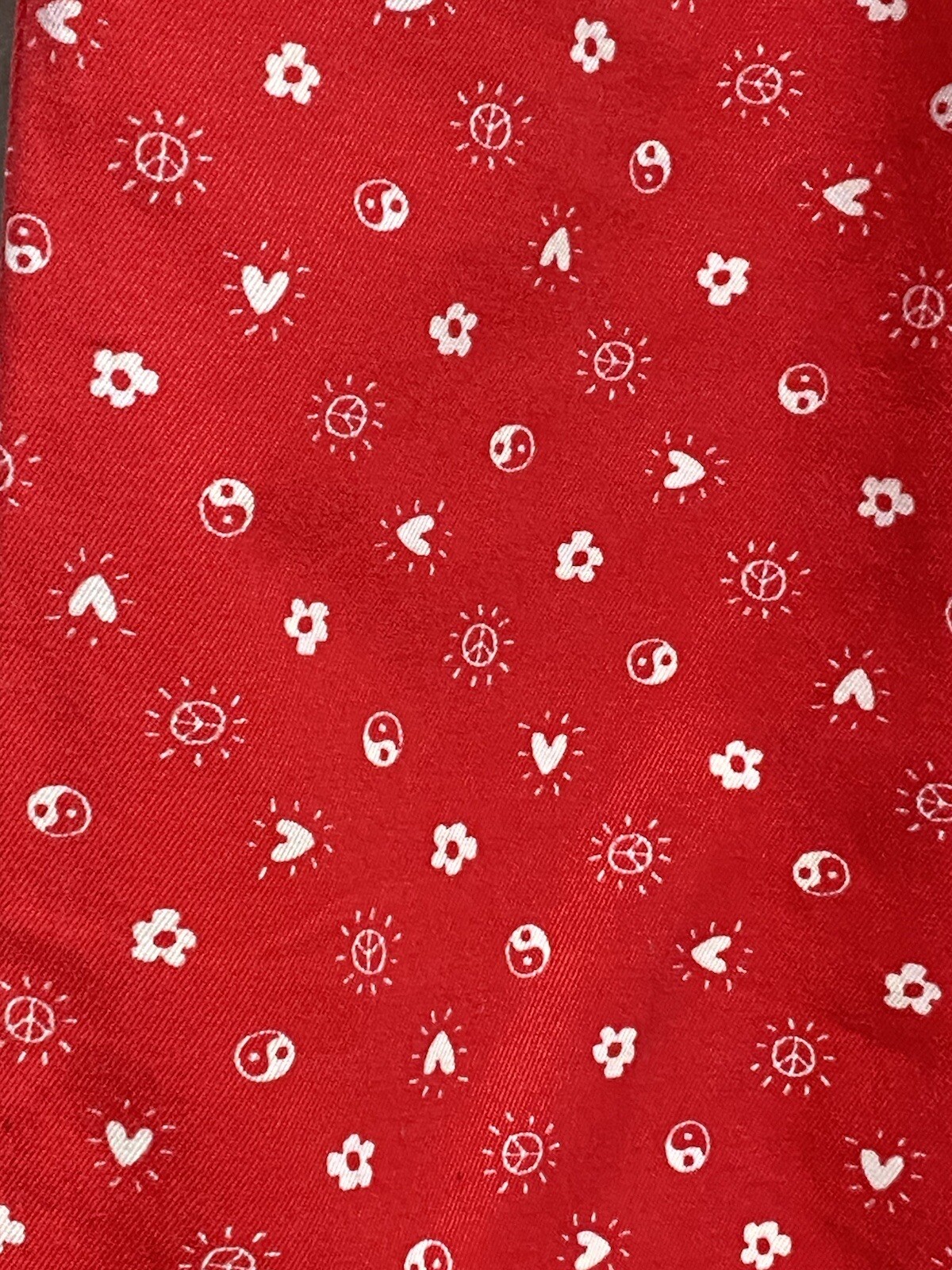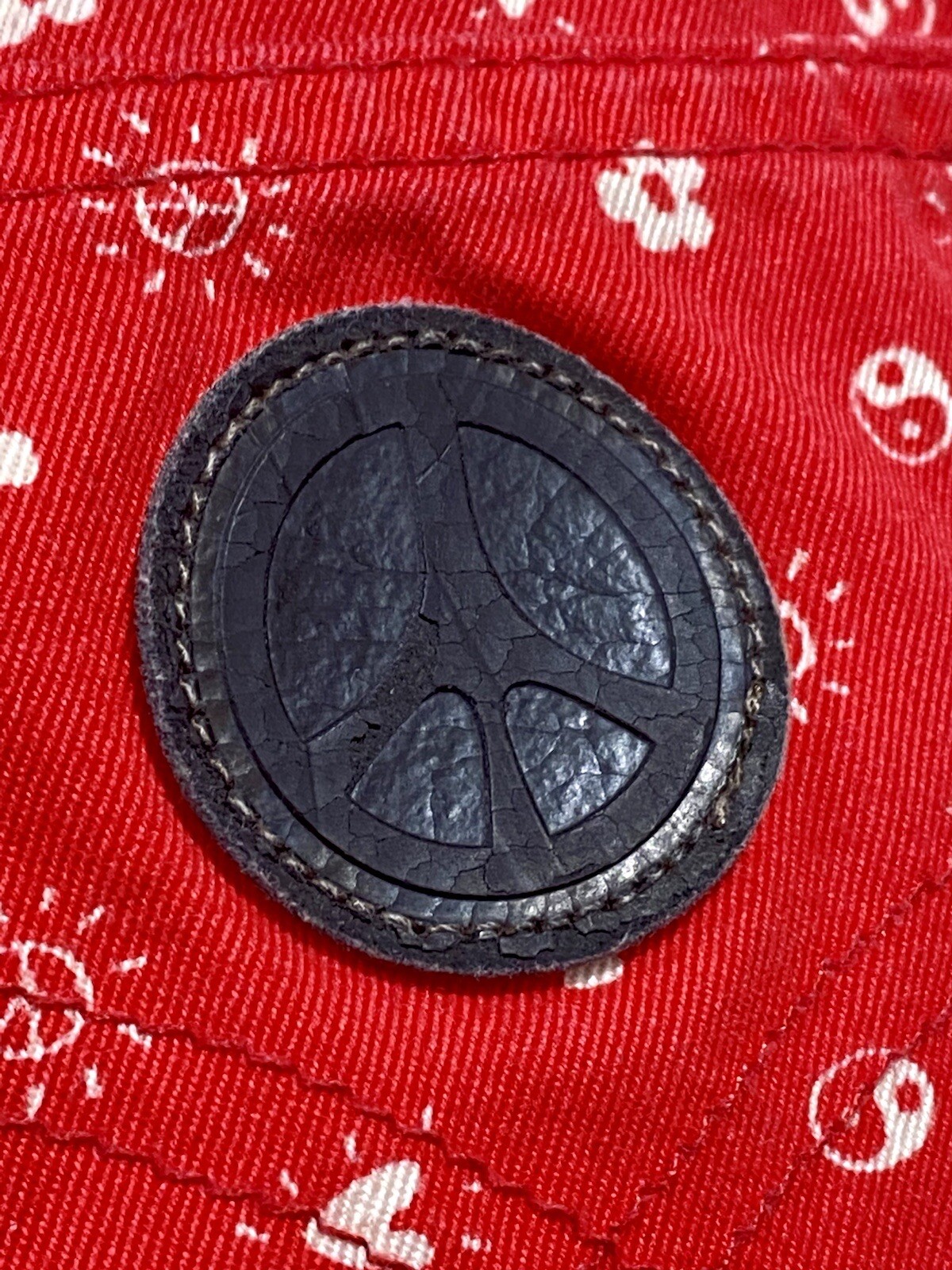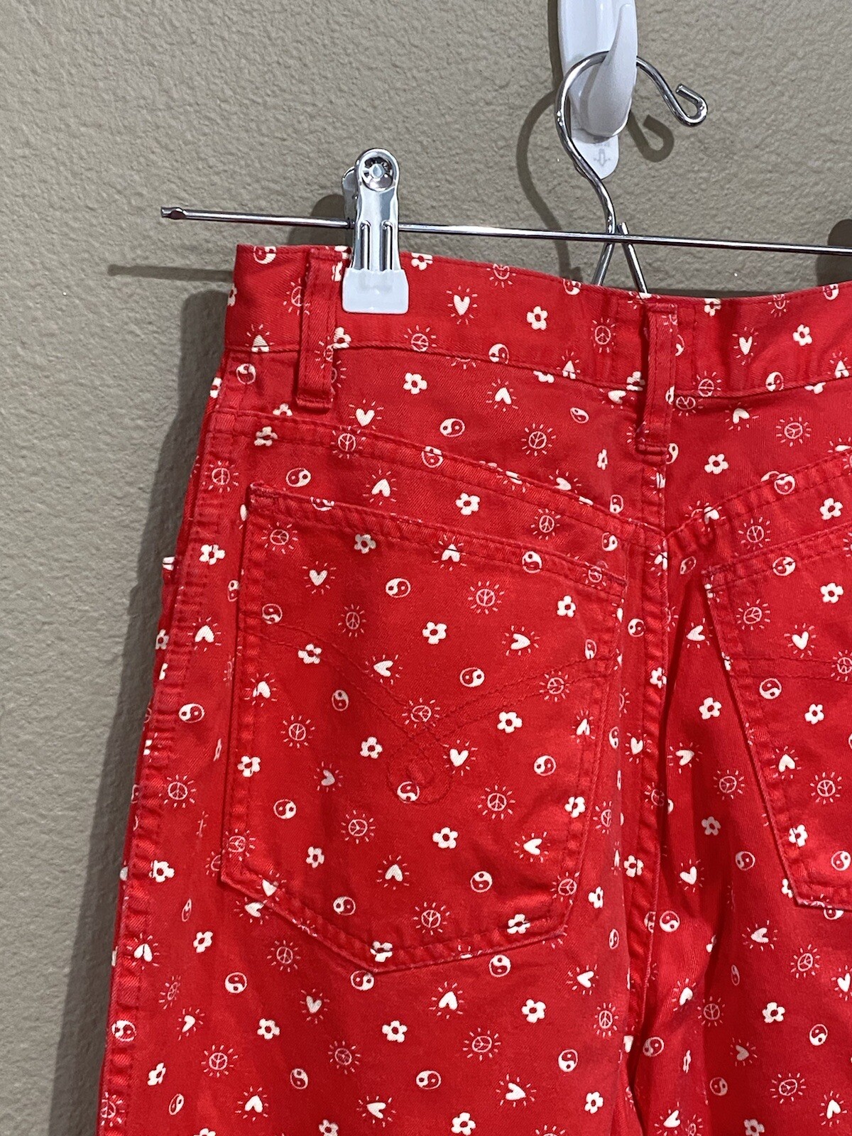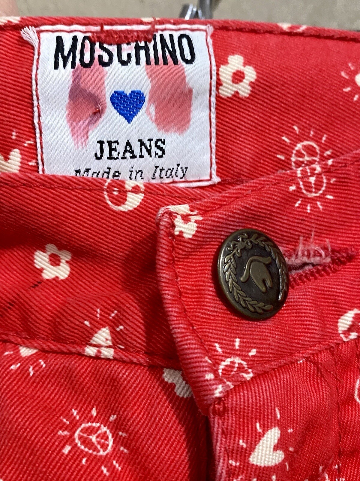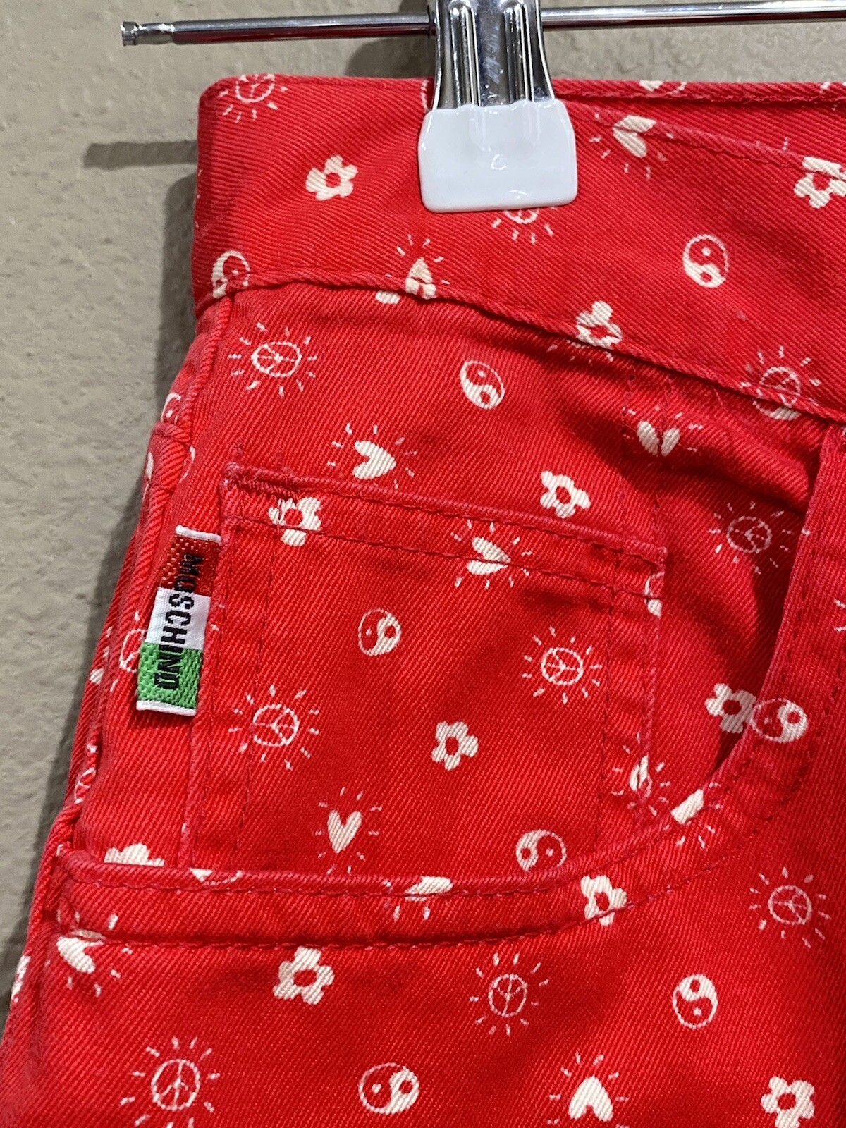 Womens Moschino Jeans Vintage Red Floral Peace Sign Pants Y2K Printed Size 26
