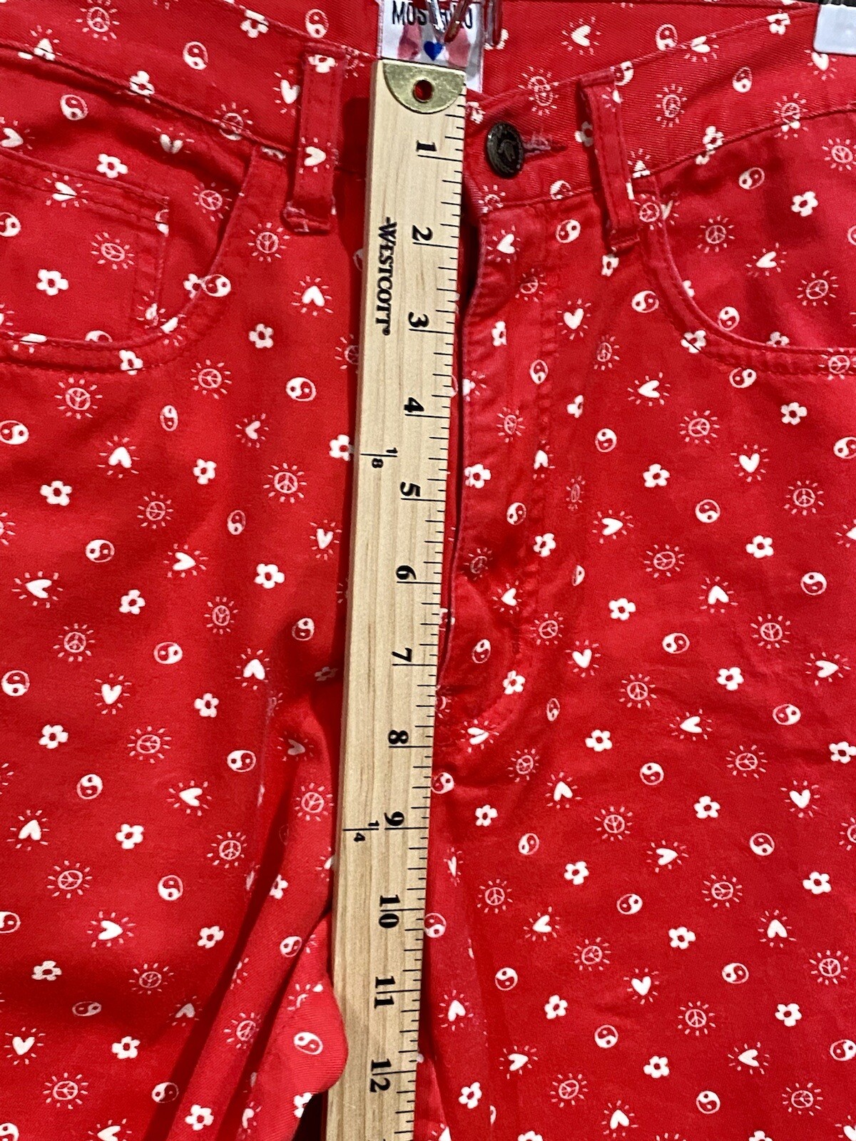 как выглядит Womens Moschino Jeans Vintage Red Floral Peace Sign Pants Y2K Printed Size 26 фото
