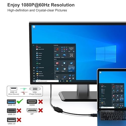 BENFEI USB 3.0 to VGA Cable Male to Male Cable B08N6LGKPL 6' Windows 8/10/11