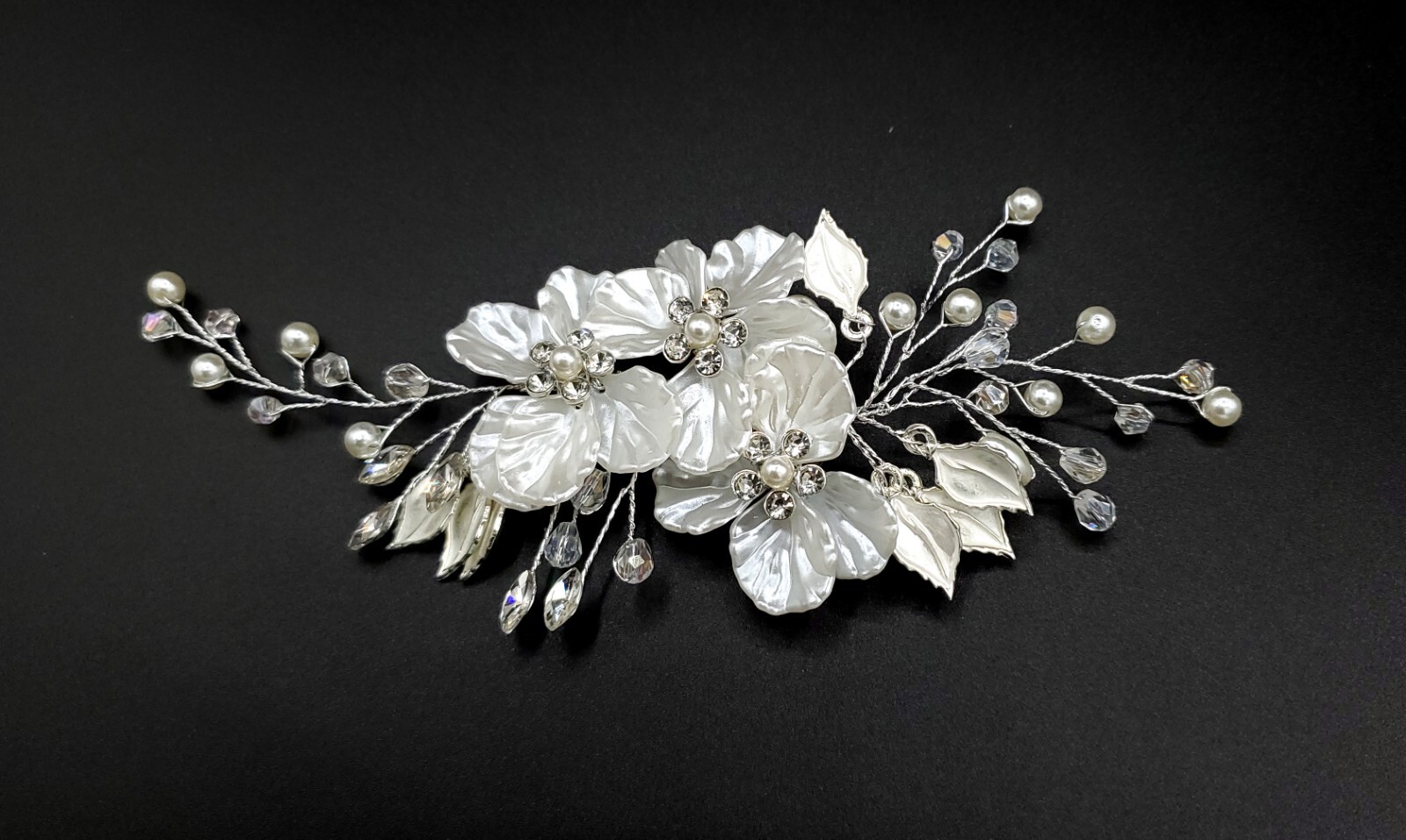 H6 Wedding Hair Clip - Silver Wire Crystals Beautiful Flowery Women Bridal Pearl