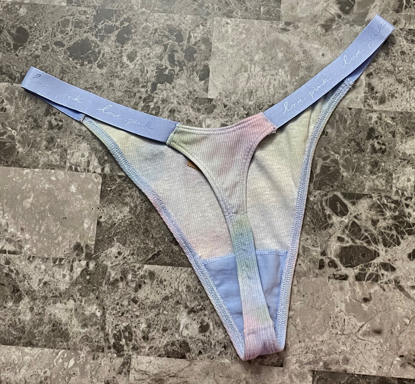 как выглядит NWT VICTORIAS SECRET PINK BLUE GREEN OMBRE RIBBED LOGO HIGH LEG THONG PANTIES фото
