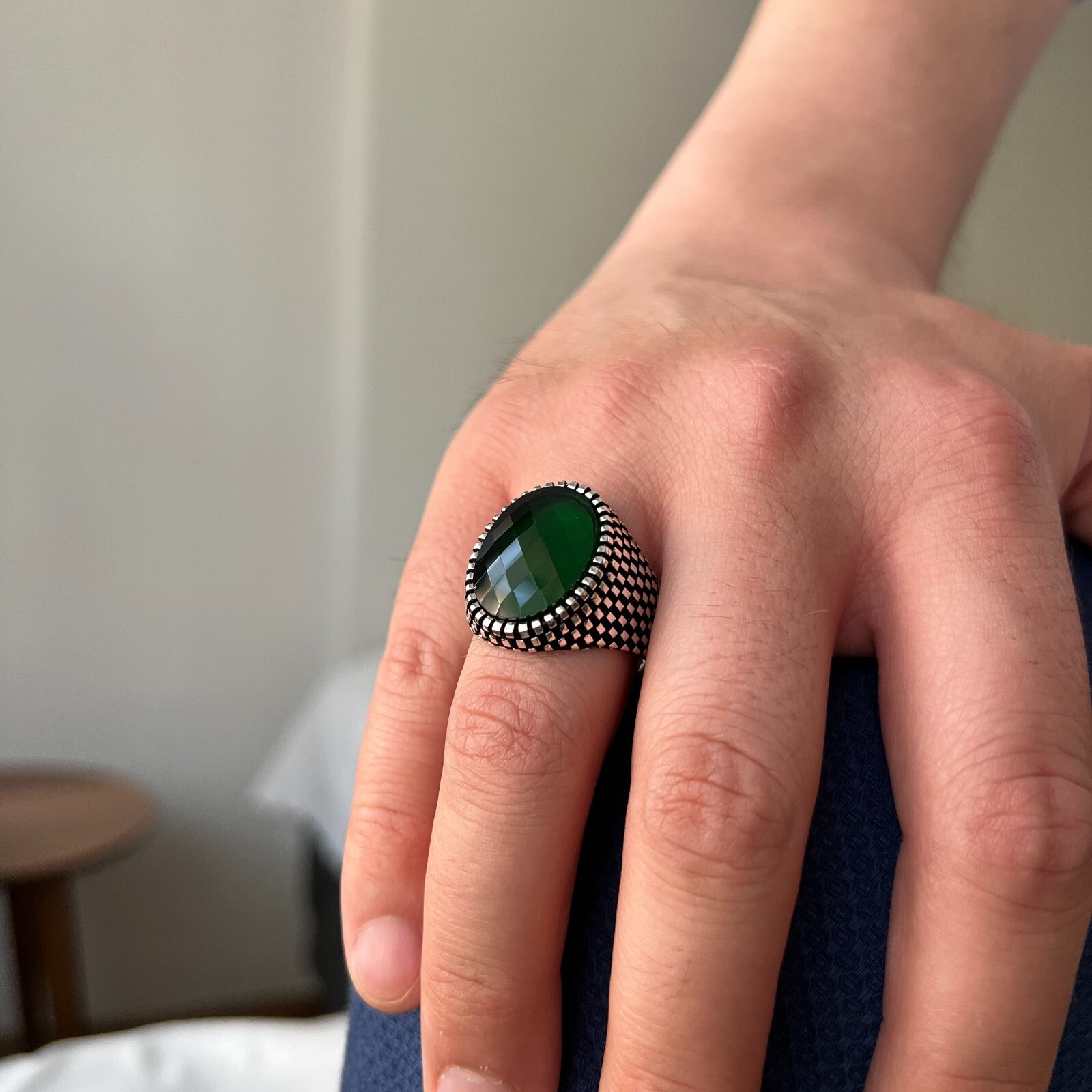 как выглядит Green Facet Zircon Stone Solid 925 Sterling Silver Men