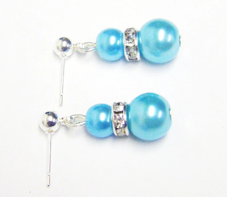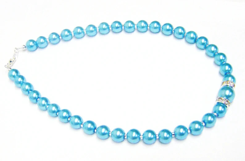 как выглядит 14.5" Turquoise Glass Pearl Necklace/Bracelet/Earrings Set for Little Girl фото