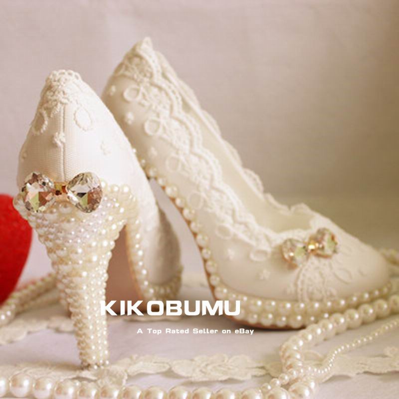 Lace Pearl Wedding Bridal Bridesmaid Shoes white ivory different heels available